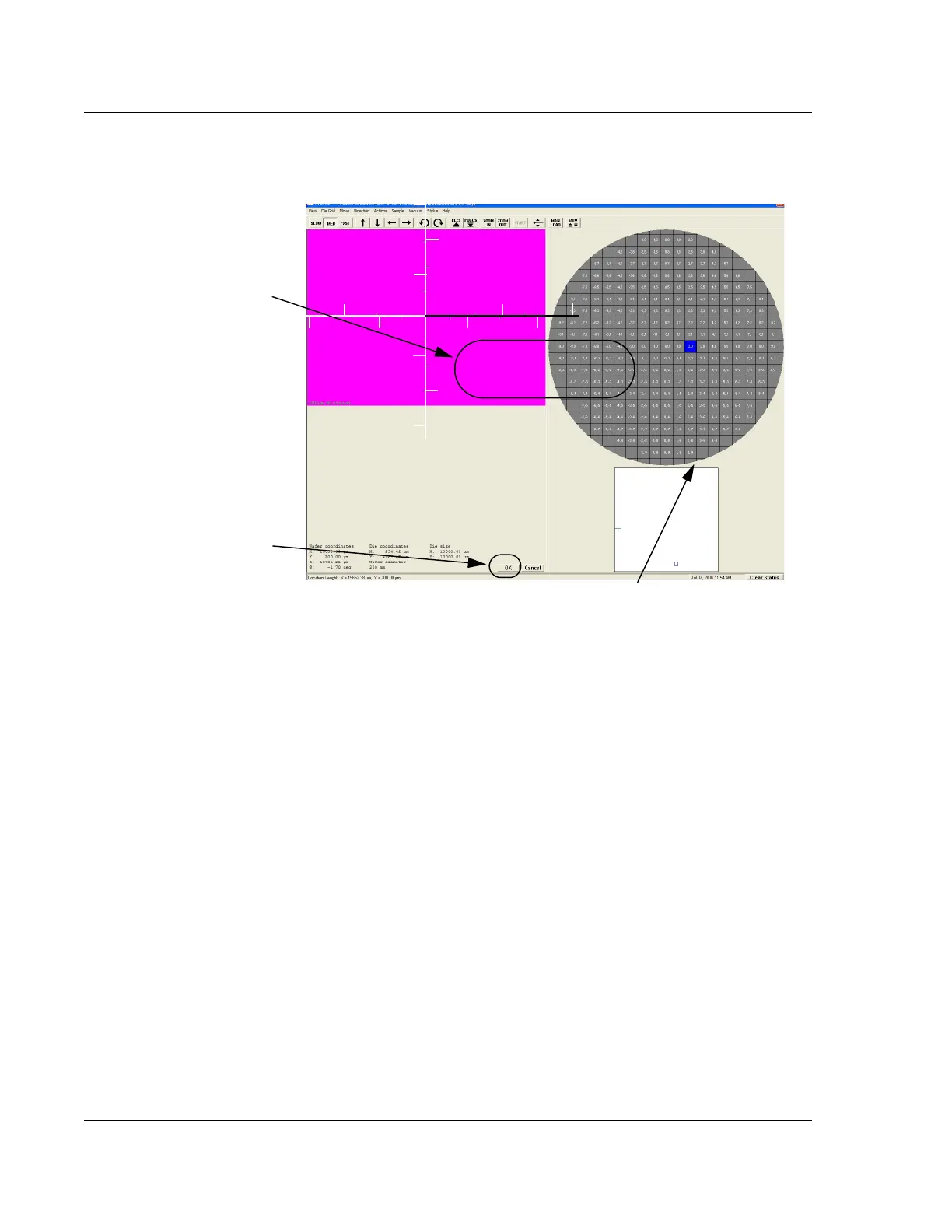 The die navigation box can be used to position the scan for