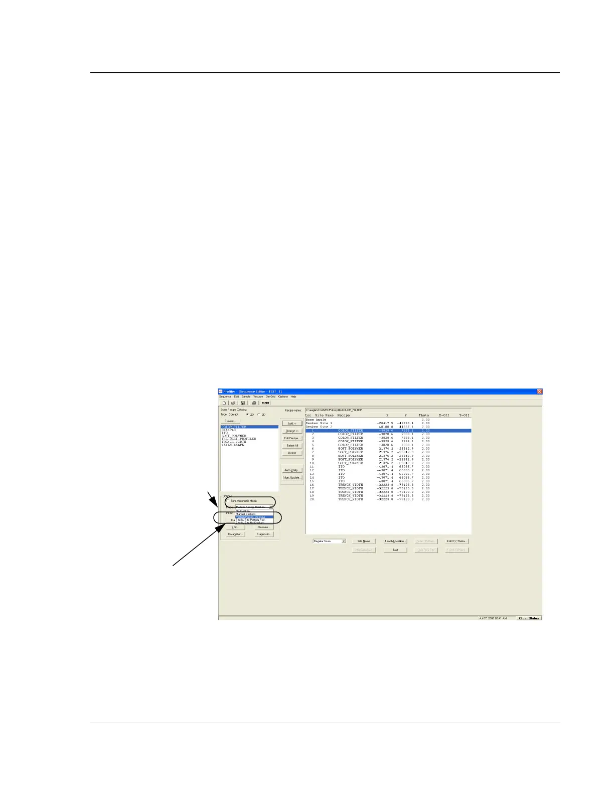 KLA-Tencor P-16+ / P-6 User’s Guide Sequence Recipe and Data - Editing the Options Field in the Sequence Editor