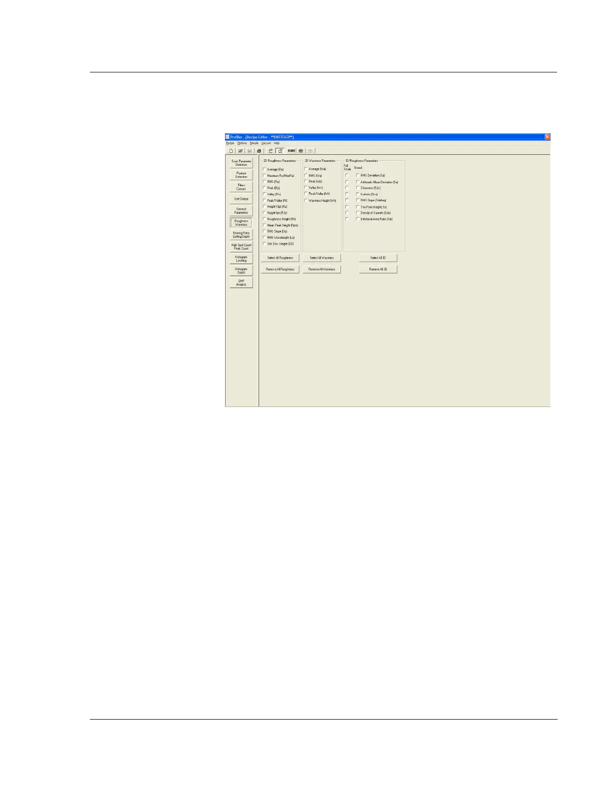 Figure 7.17 3D Recipe Editor with Roughness/Waviness Options