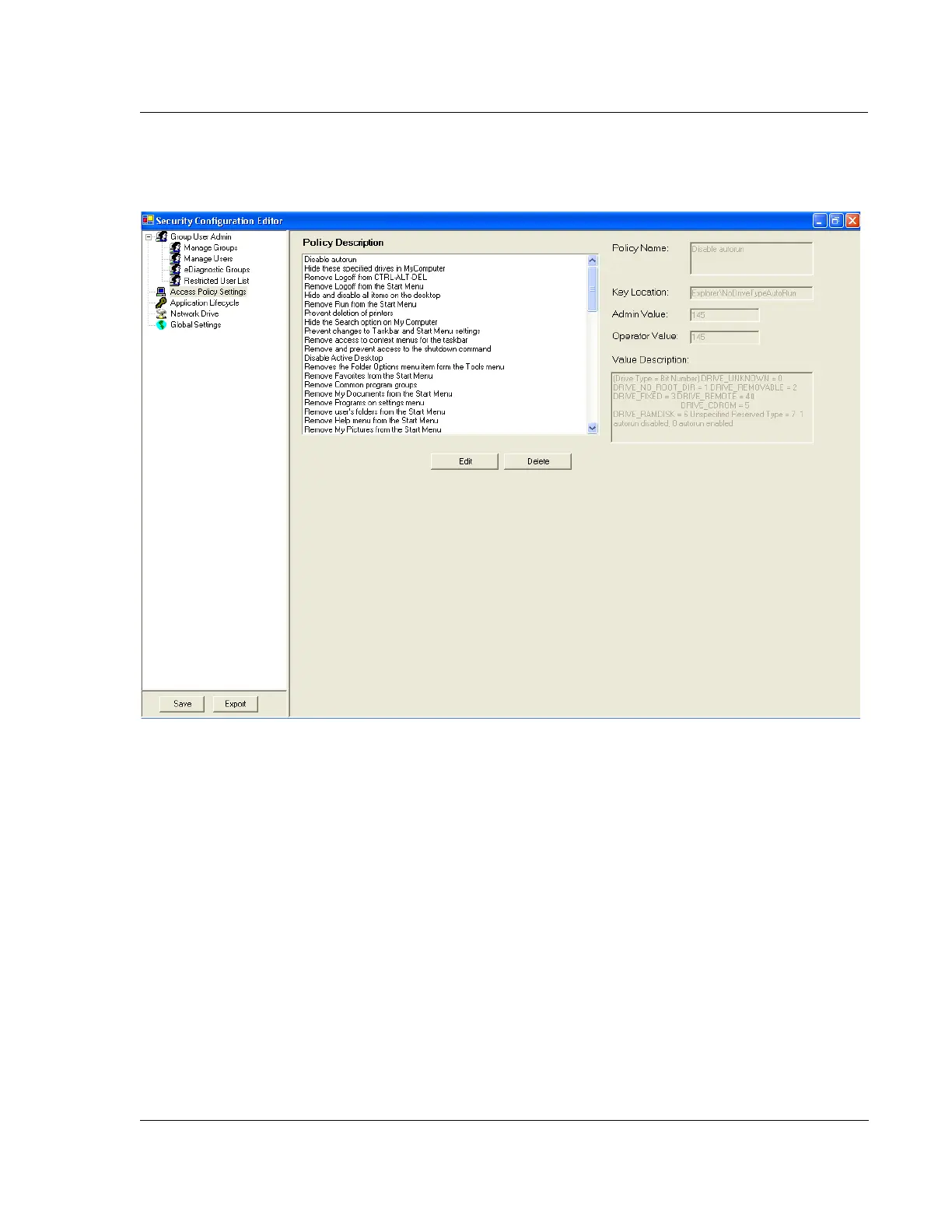1. Open the Security Configuration Editor and select Access Policy Settings.