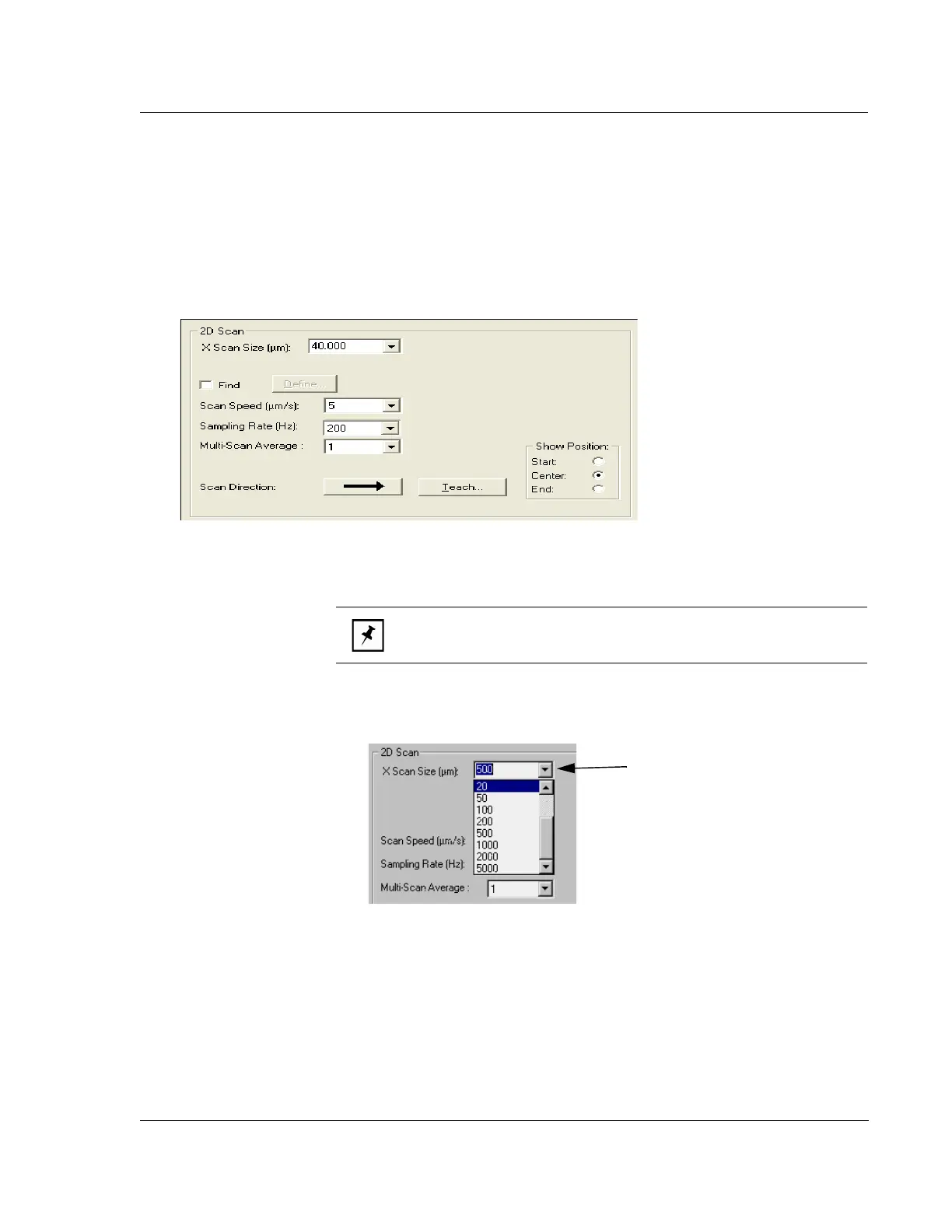 X Scan Size (μm). This variable sets the length of the actual scan. It is set in one