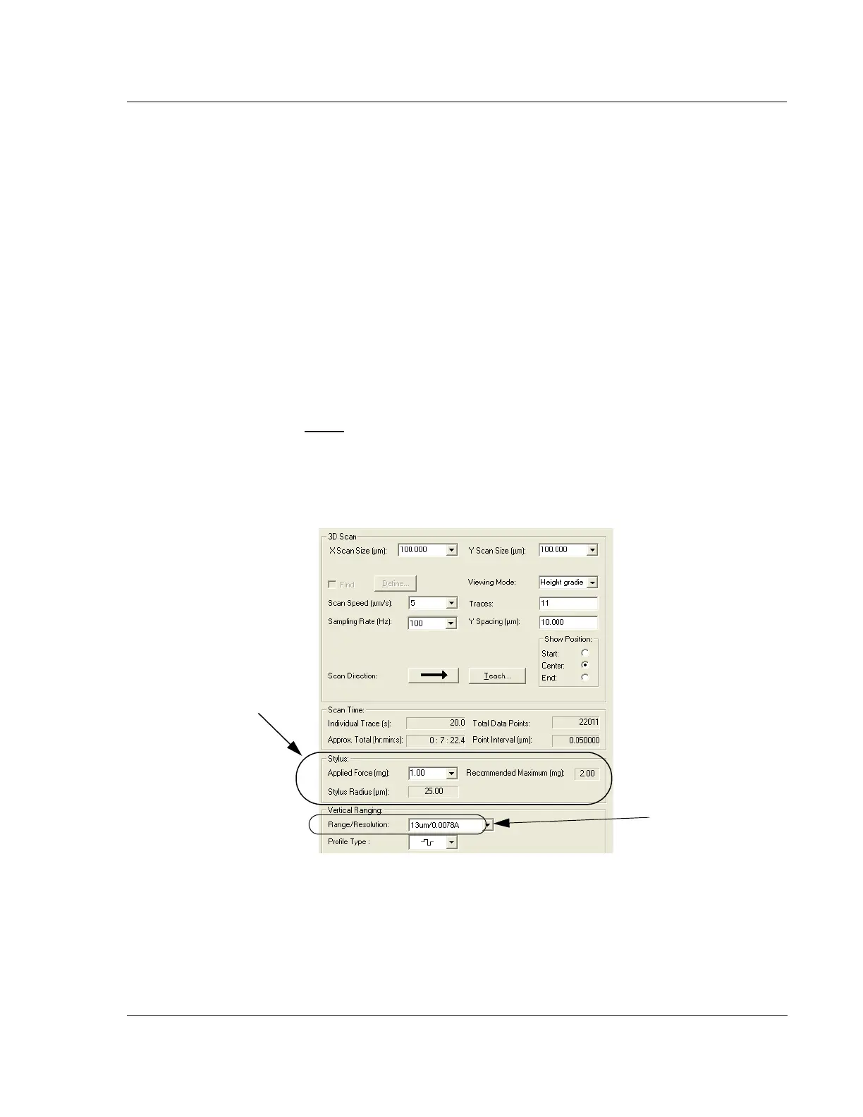 Stylus Parameters (2D and 3D) - Scan Parameters Definition 3