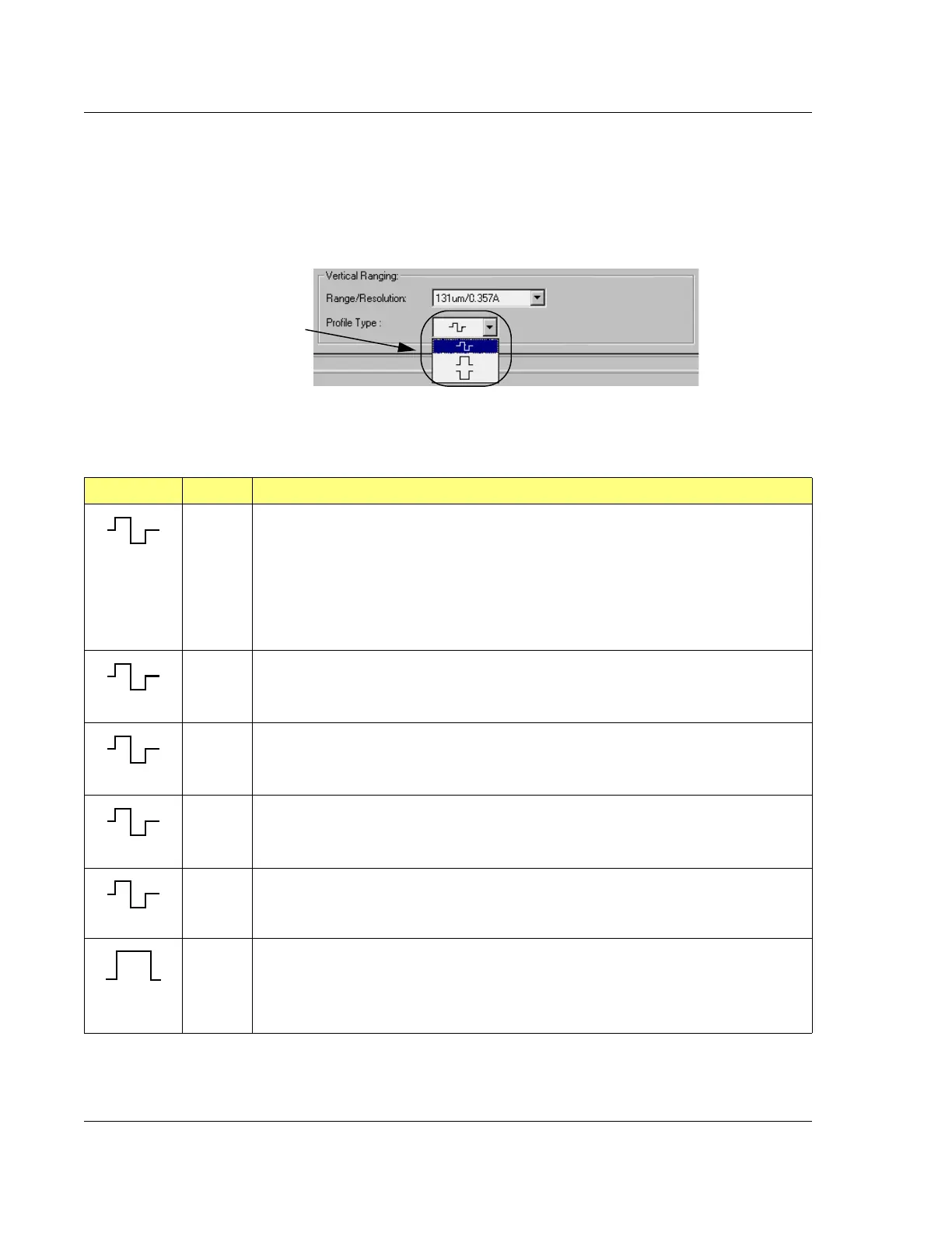 Profile Type: Available choices for each range and the resultant scan traces