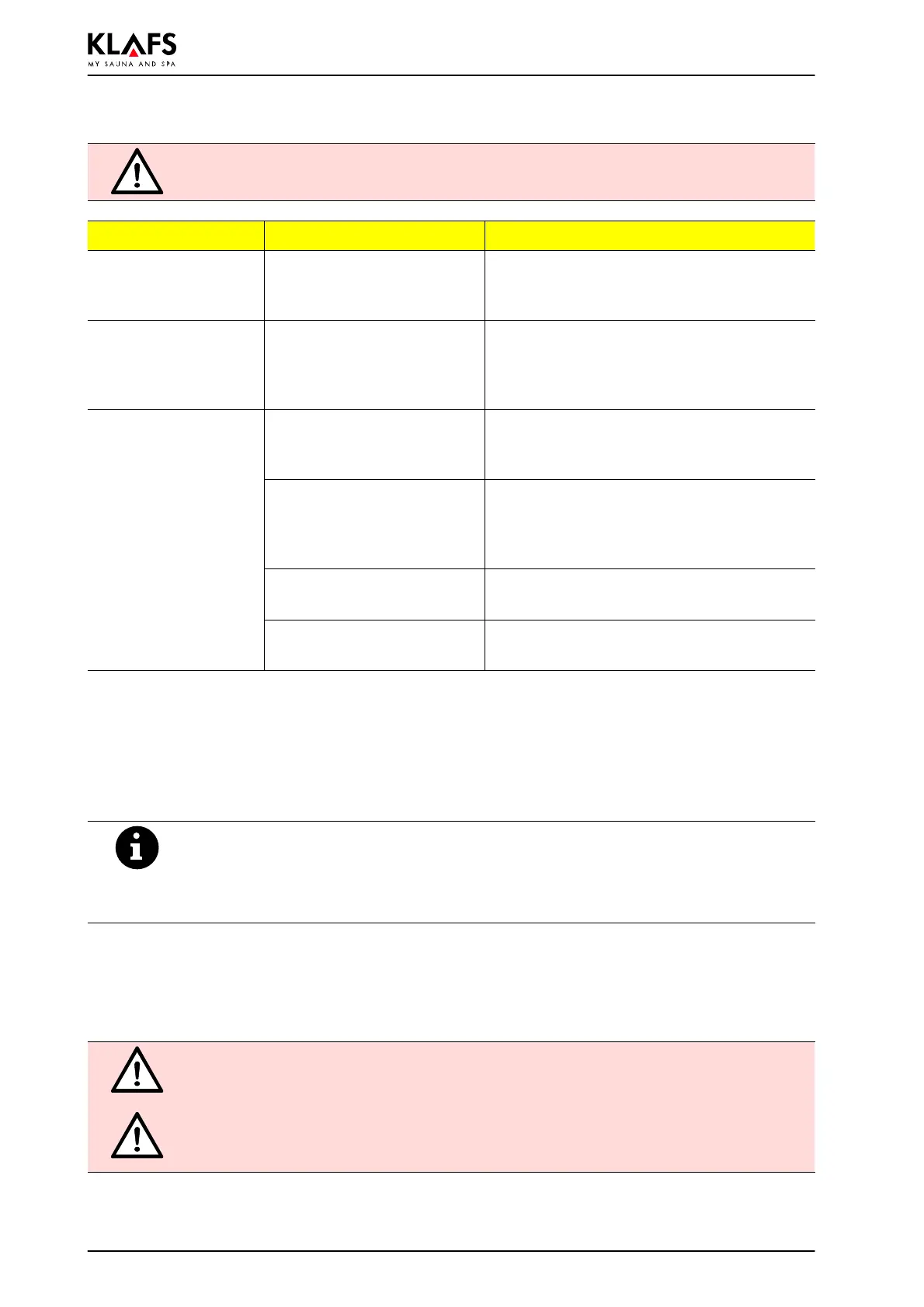All repair and maintenance work must be done exclusively by Klafs or by a dealer we
