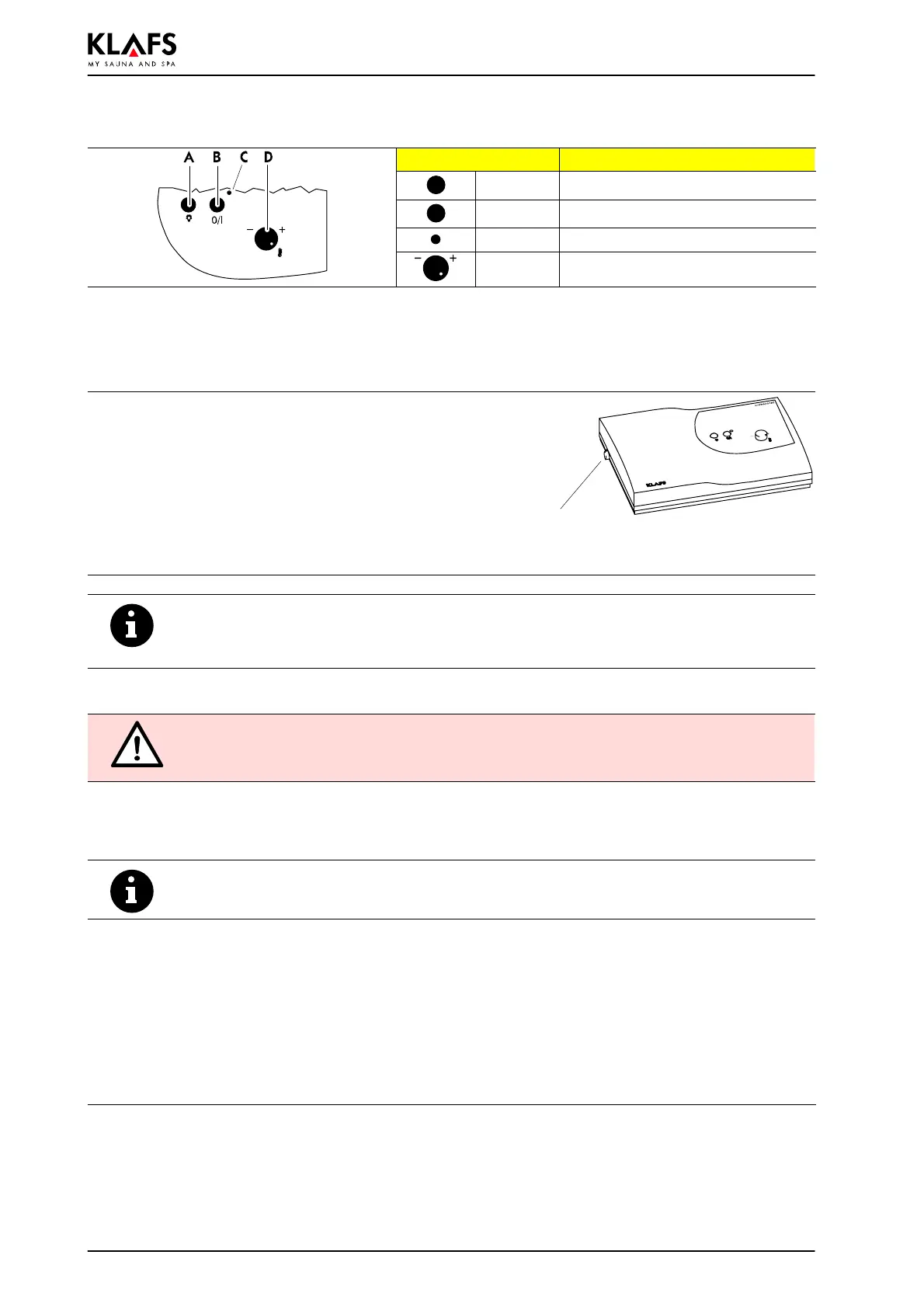 Pendant le fonctionnement, la DEL C clignote. Le poêle de sauna se met en marche. Le sauna se