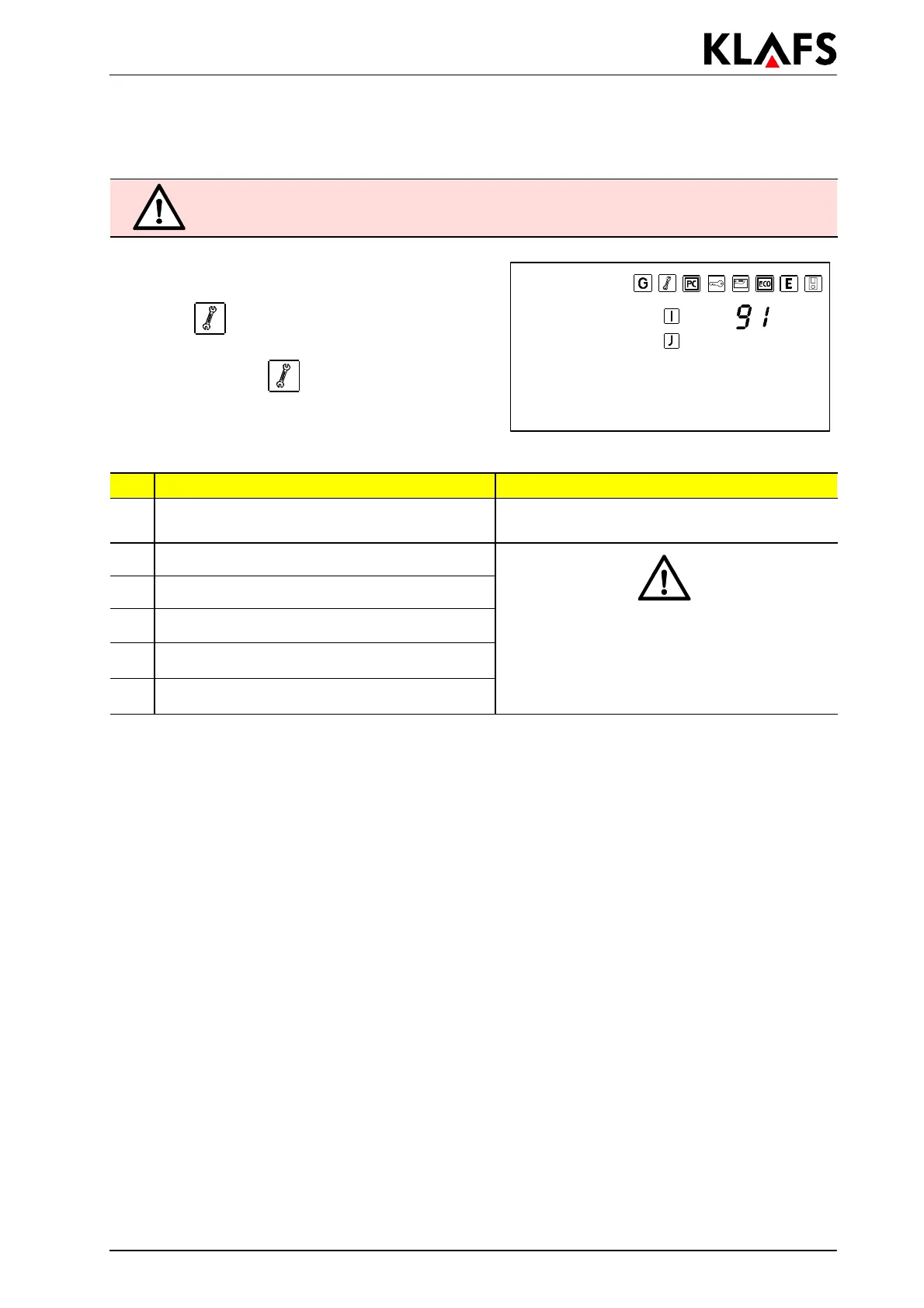 Inform the servicing personnel at Klafs.