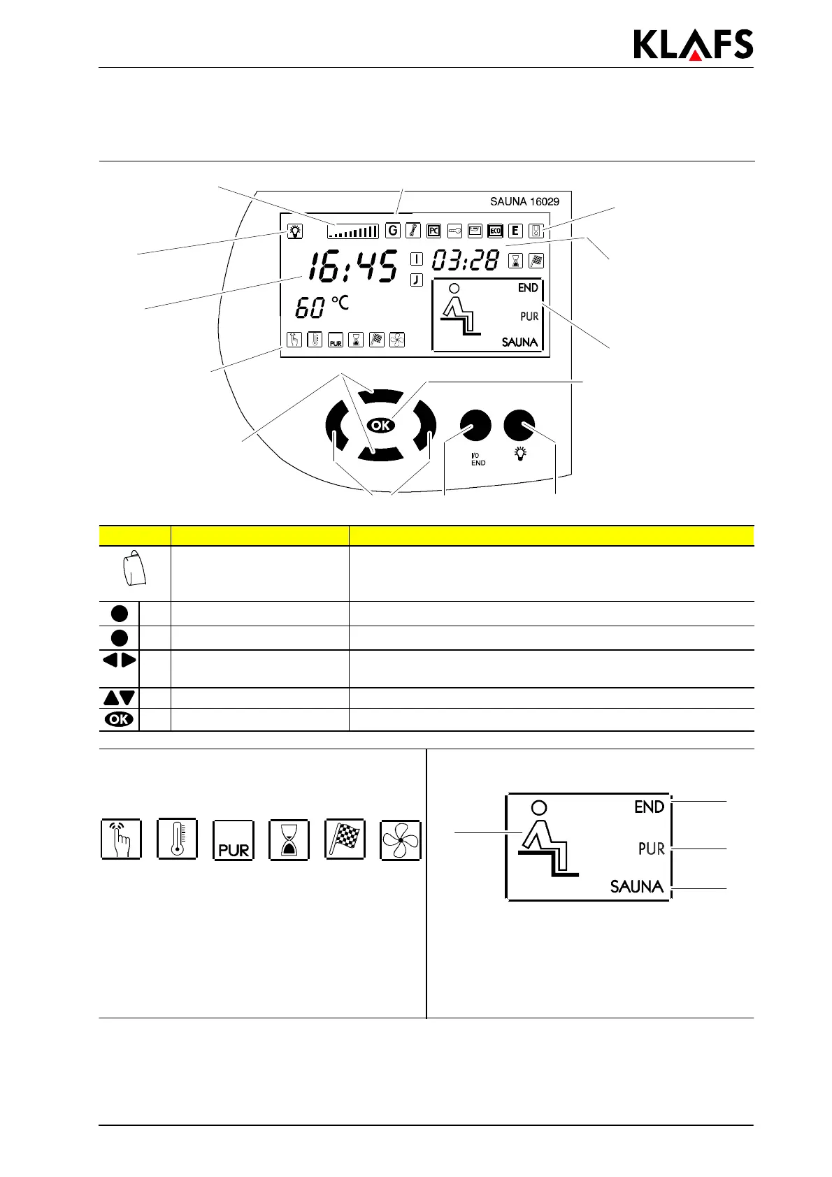 B Tecla I/0 Seleccióndeoperación: Sauna o Fin de programa.