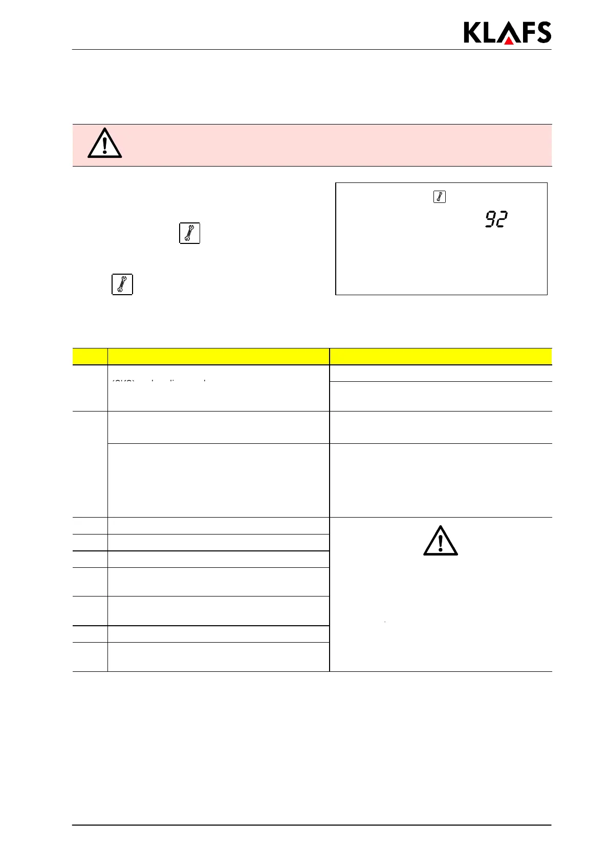 Informar al personal de servicio de Klafs.