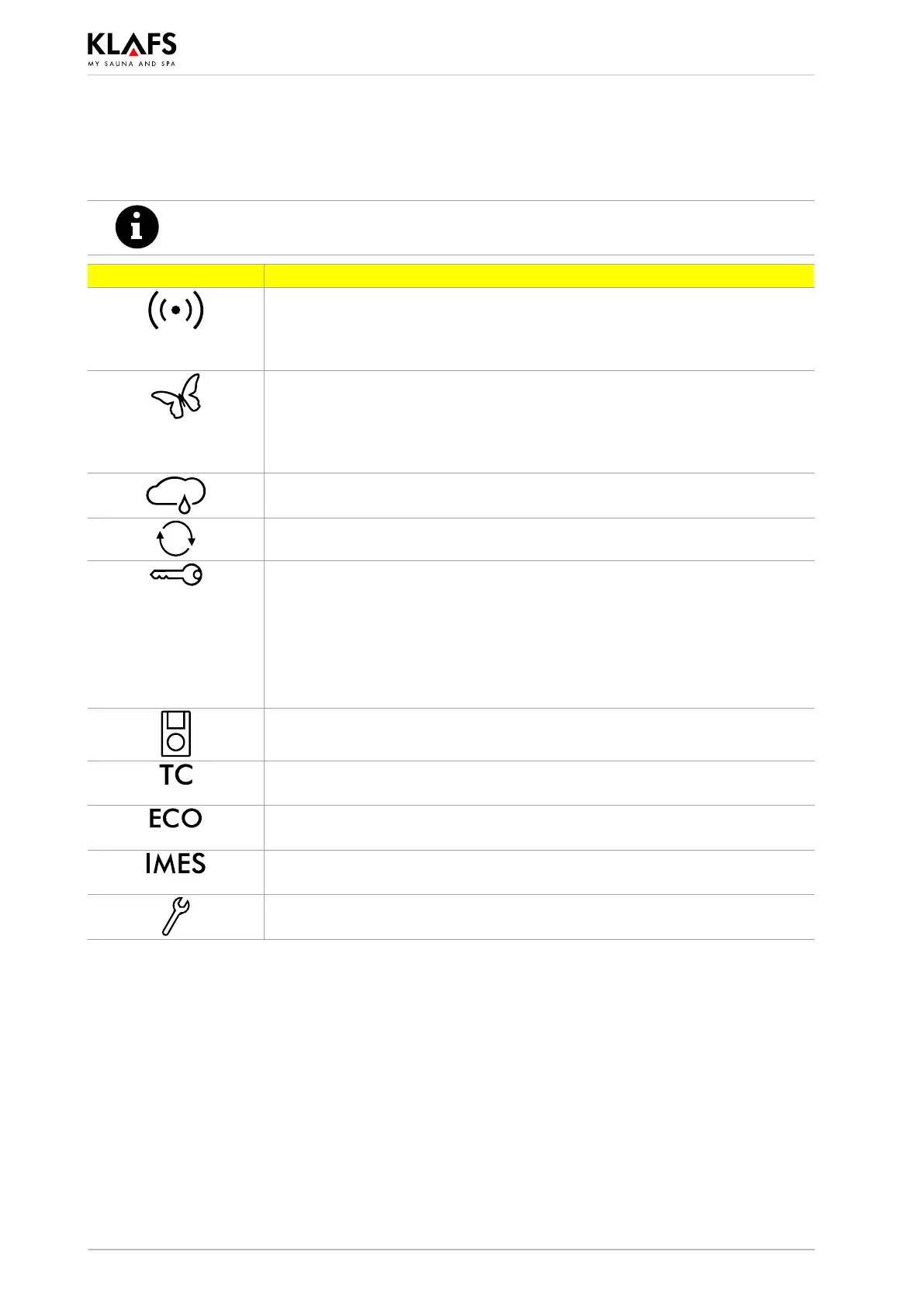 Output from the sauna heater is requested via the key switch.