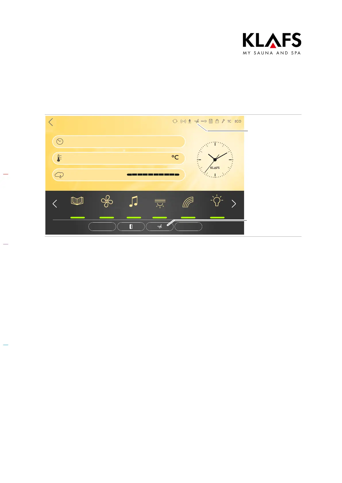 supply for the sauna cabin. The symbol on the controller is active.