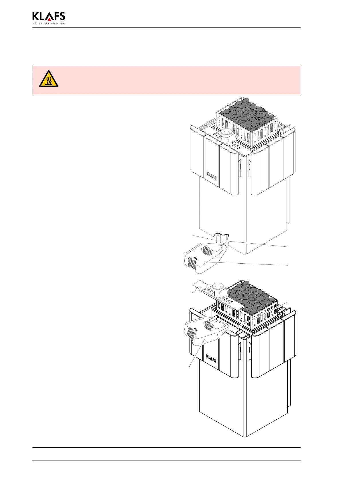 Le poêle ou le cache (4) est encore très chaud juste après le fonctionnement du bain.