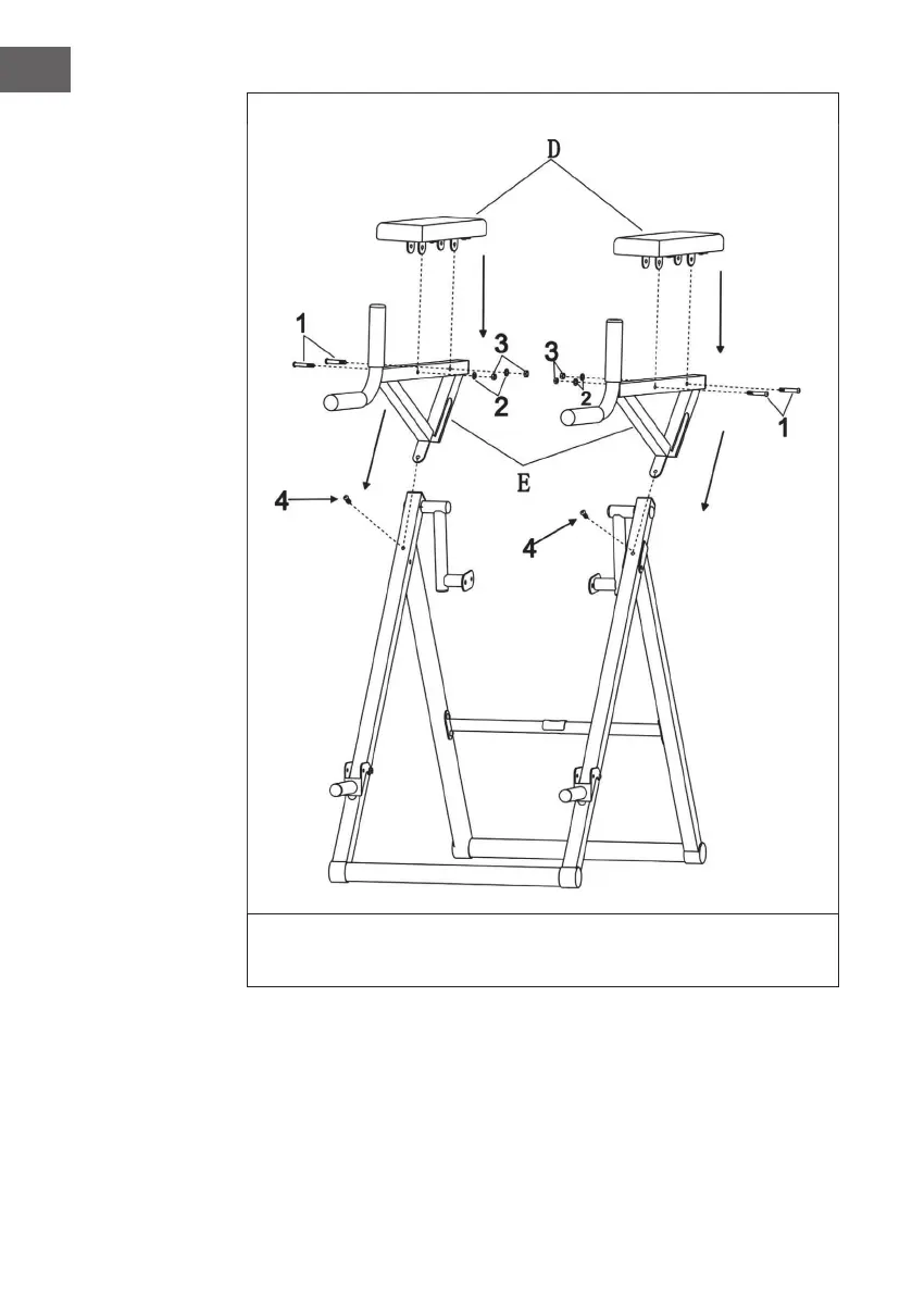 Installez ensuite les poignées (E) sur le cadre et xez-les avec les vis (4.) ; montez enn