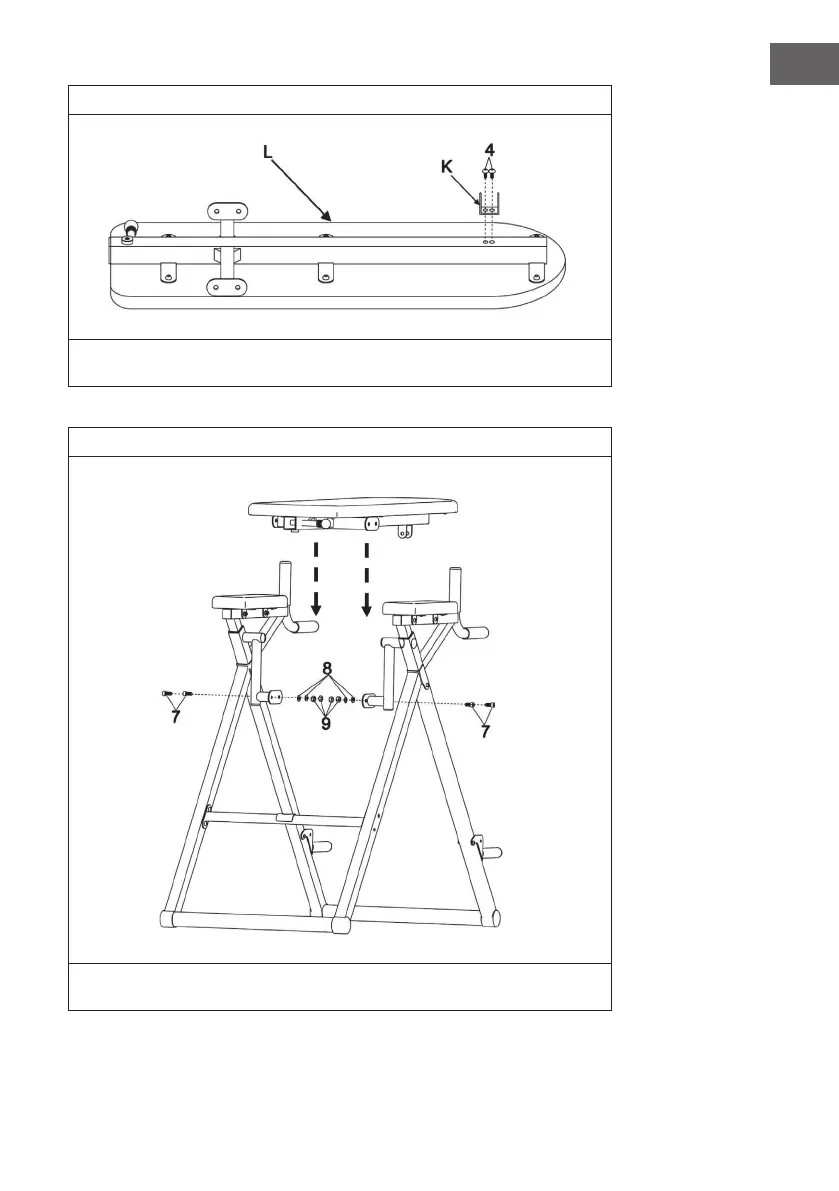 Fissare lo schienale (L) ssando le viti (7.), le rondelle (8.) e i dadi (9.) come mostrato