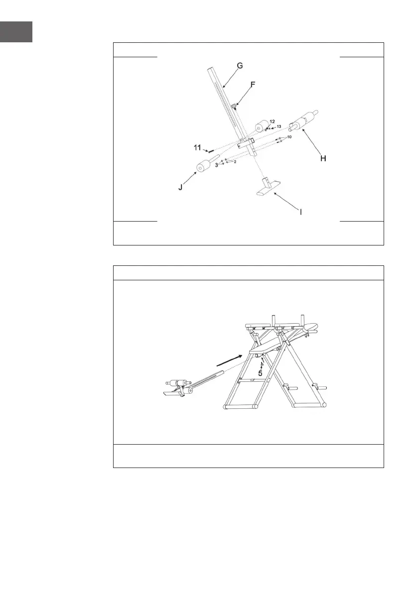 Fissare i supporti per le caviglie (H e J) e la pedana (I) alla barra regolabile, come