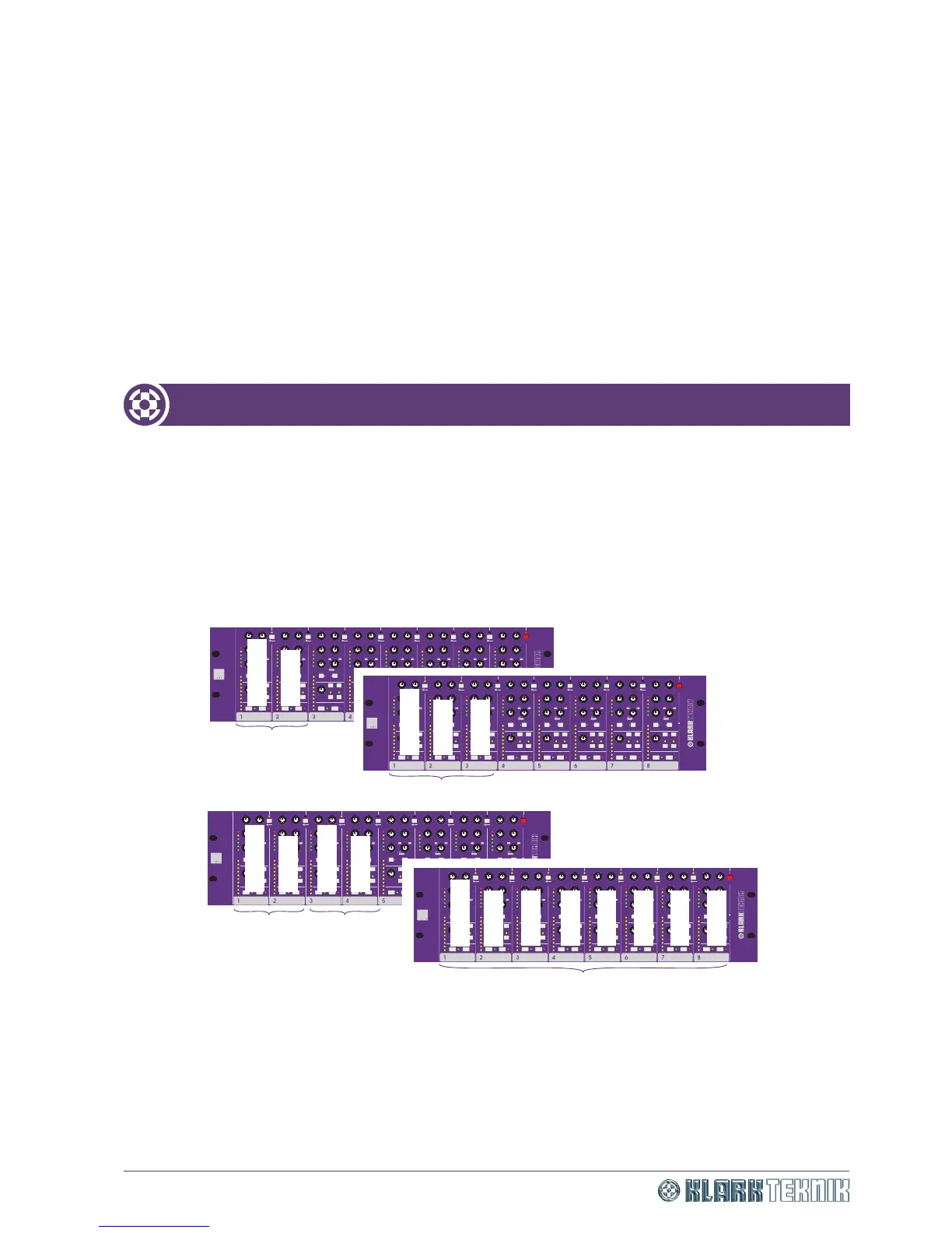 Using the intermediate LINK switches, adjacent channels can be linked, in all modes, for stereo or