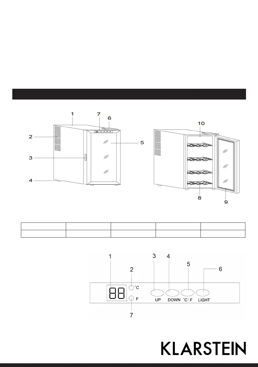 1 Enclosures 3 Handle 5 Glass door 7 Control Panel 9 Seal