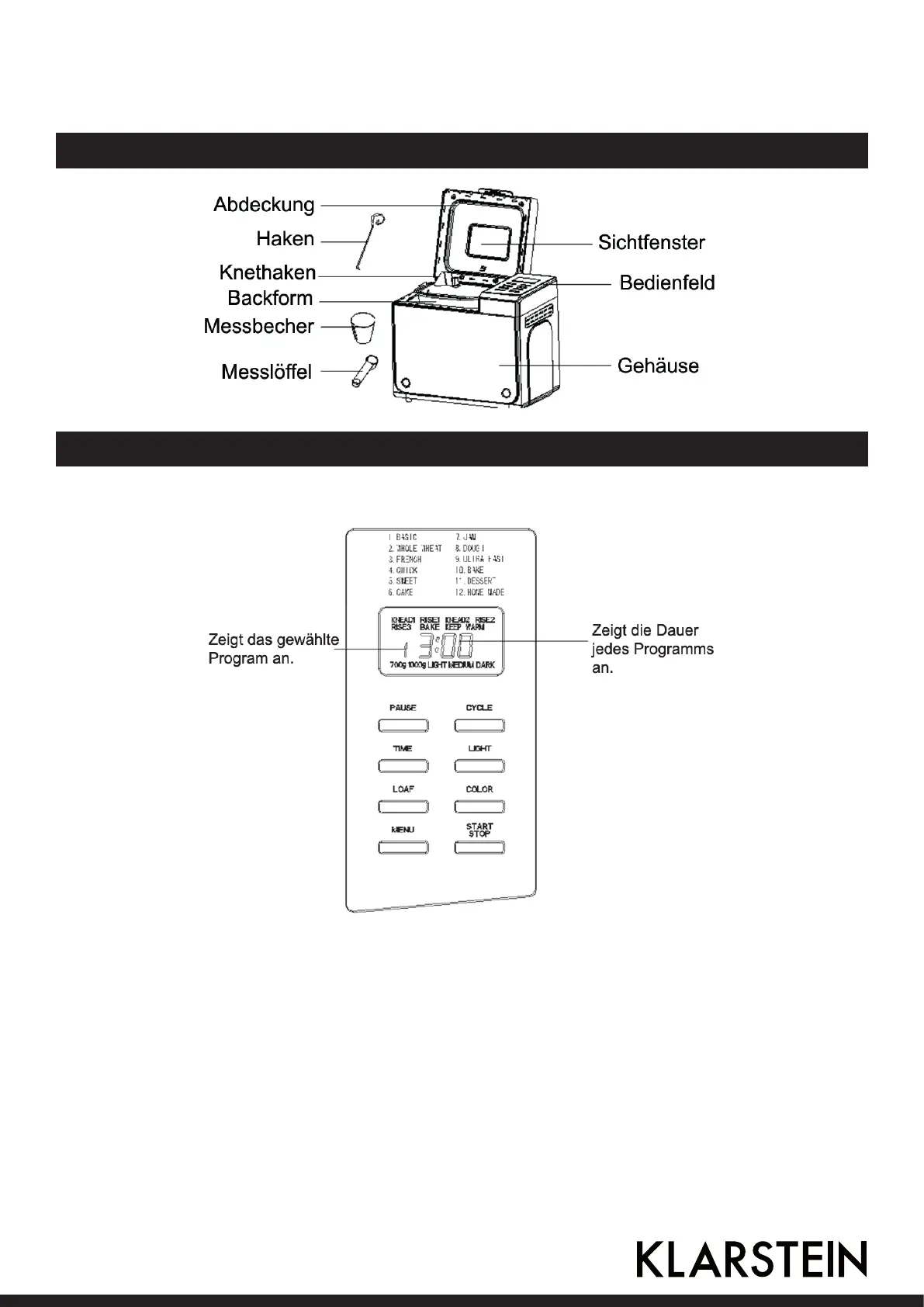 ERLÄUTERUNG ZUM BEDIENFELD