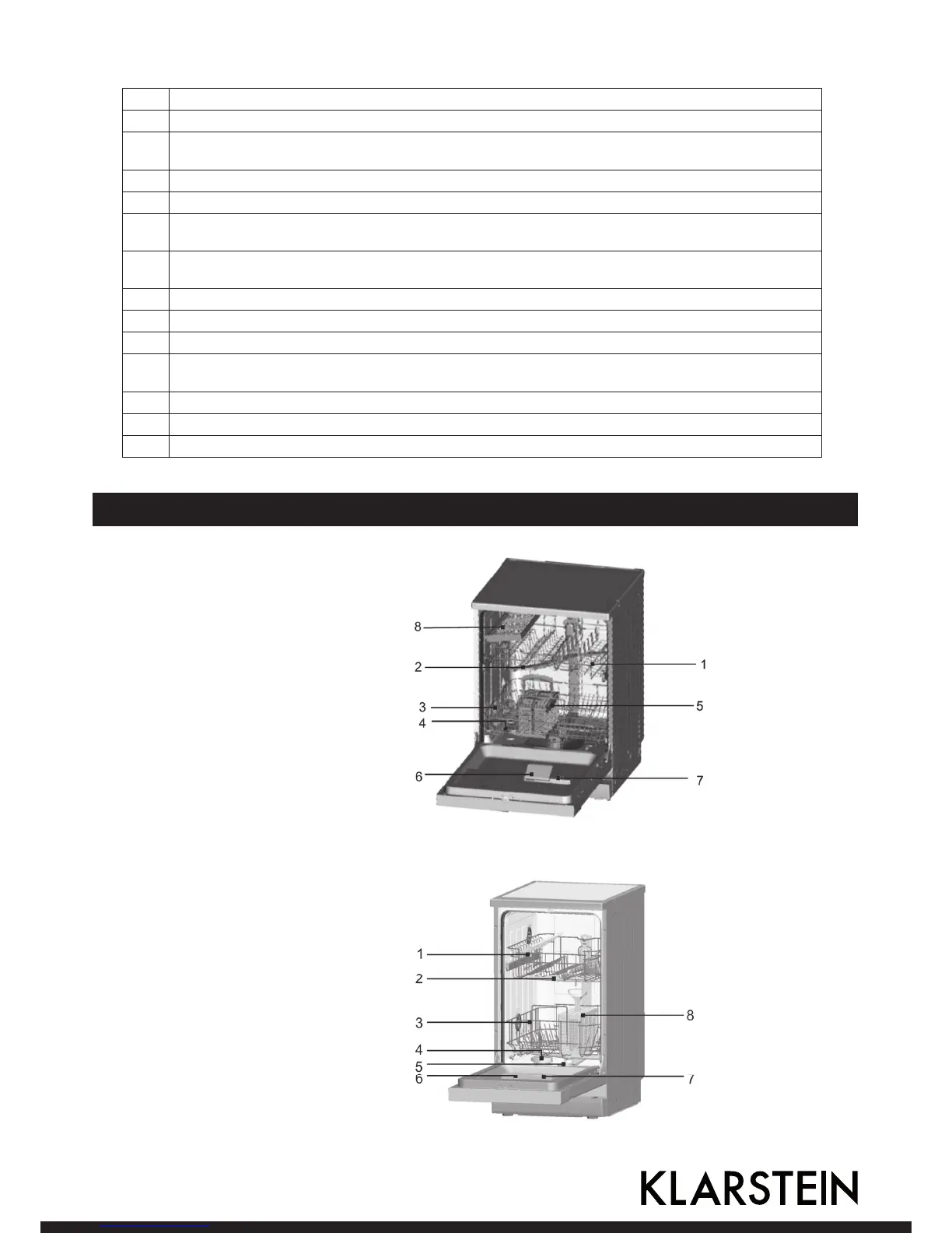 9 Klarspül-Kontrollleuchte: Leuchtet wenn Klarspüler nachgefüllt werden muss.