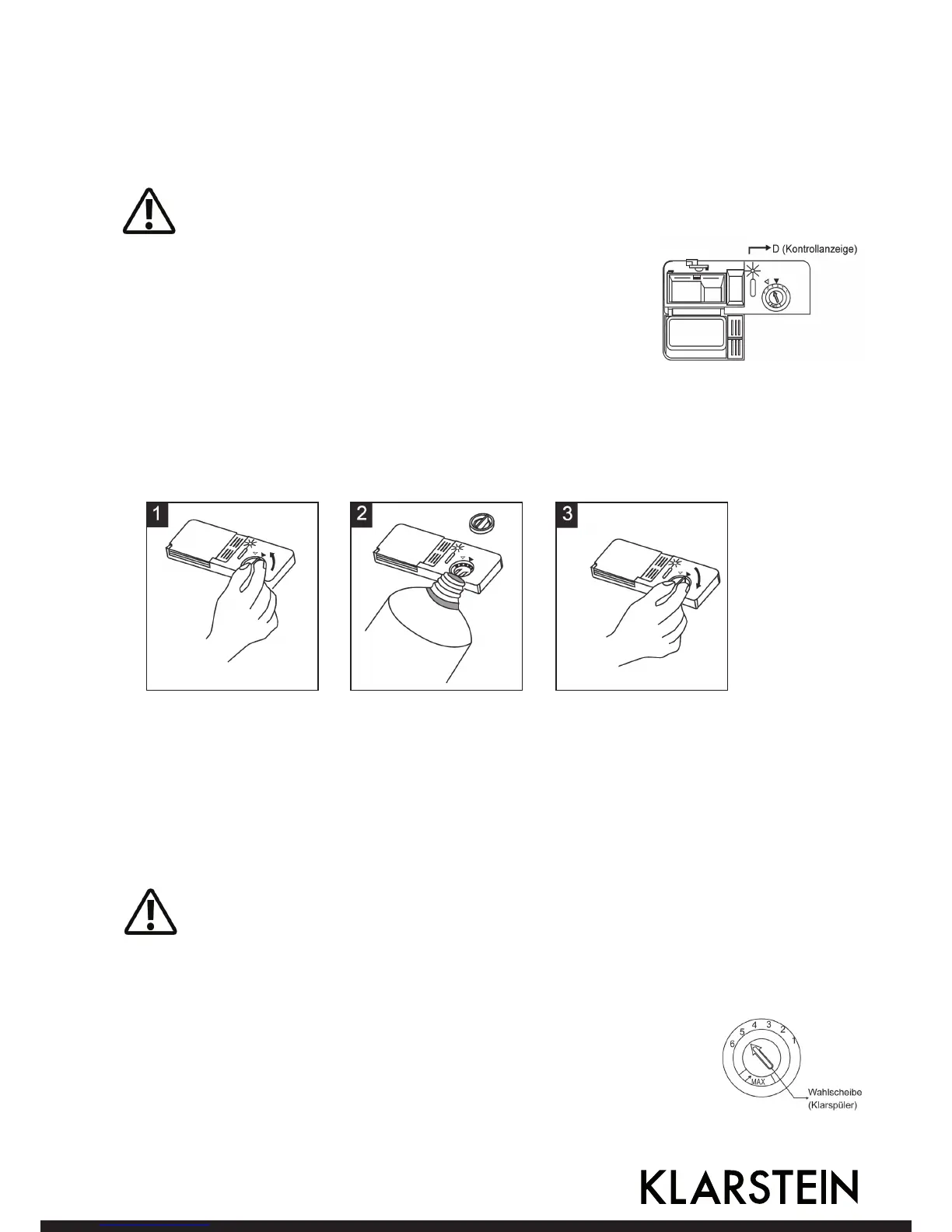 nur Klarspüler und keine anderen Reinigungssubstanzen, wie Geschirrreiniger oder üssiges