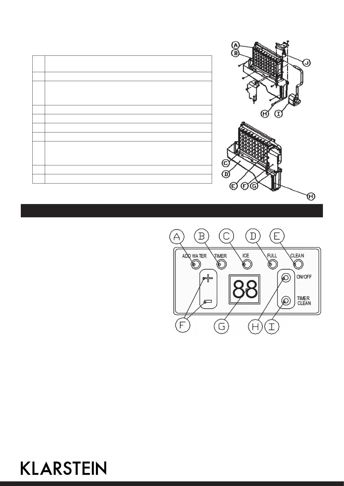 C Pannello indicatore del livello del ghiaccio: serve a con-
