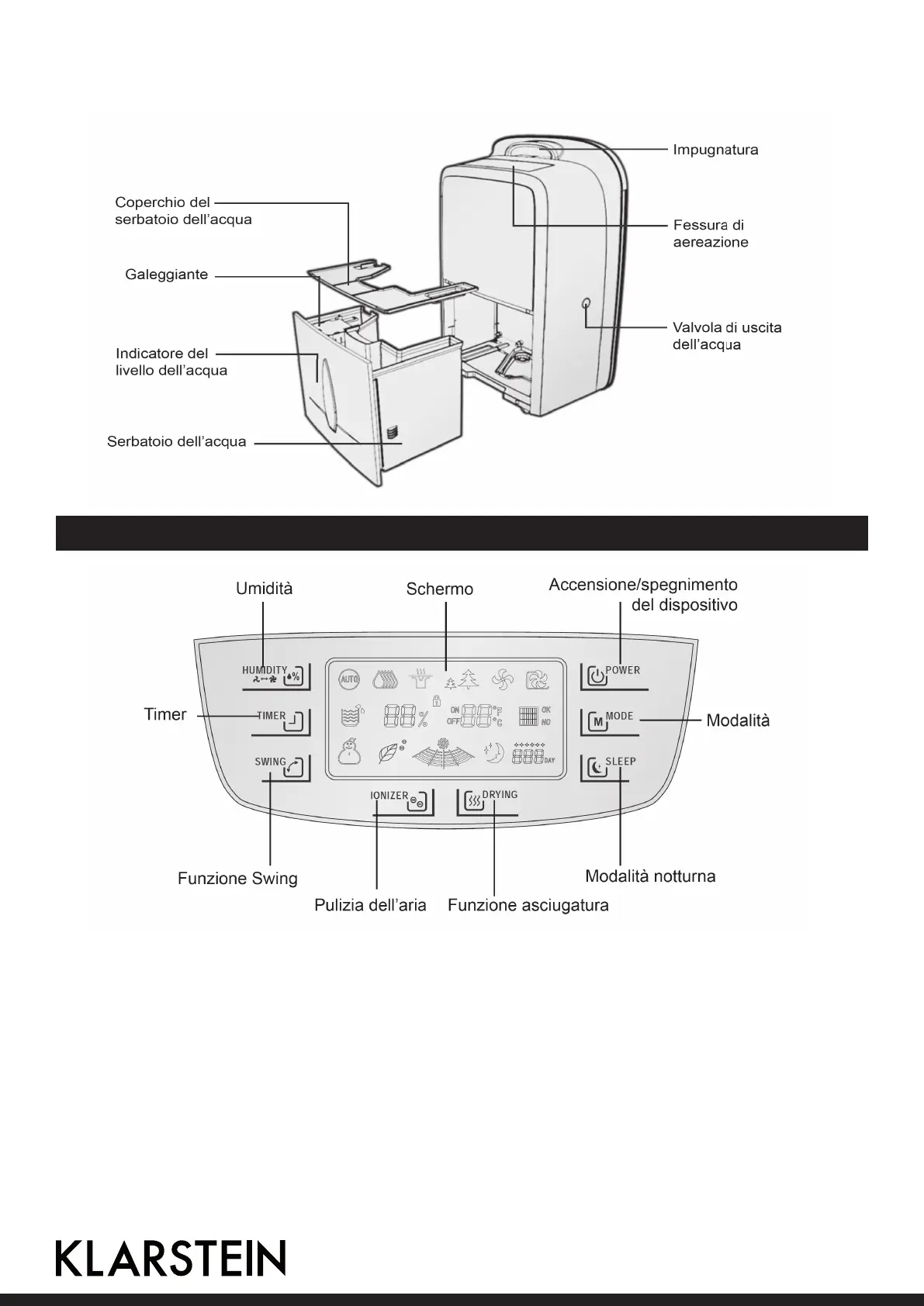 MODE Selezionare Auto/deumidi cazione massima/deumidi cazione minima, pulizia dell’aria