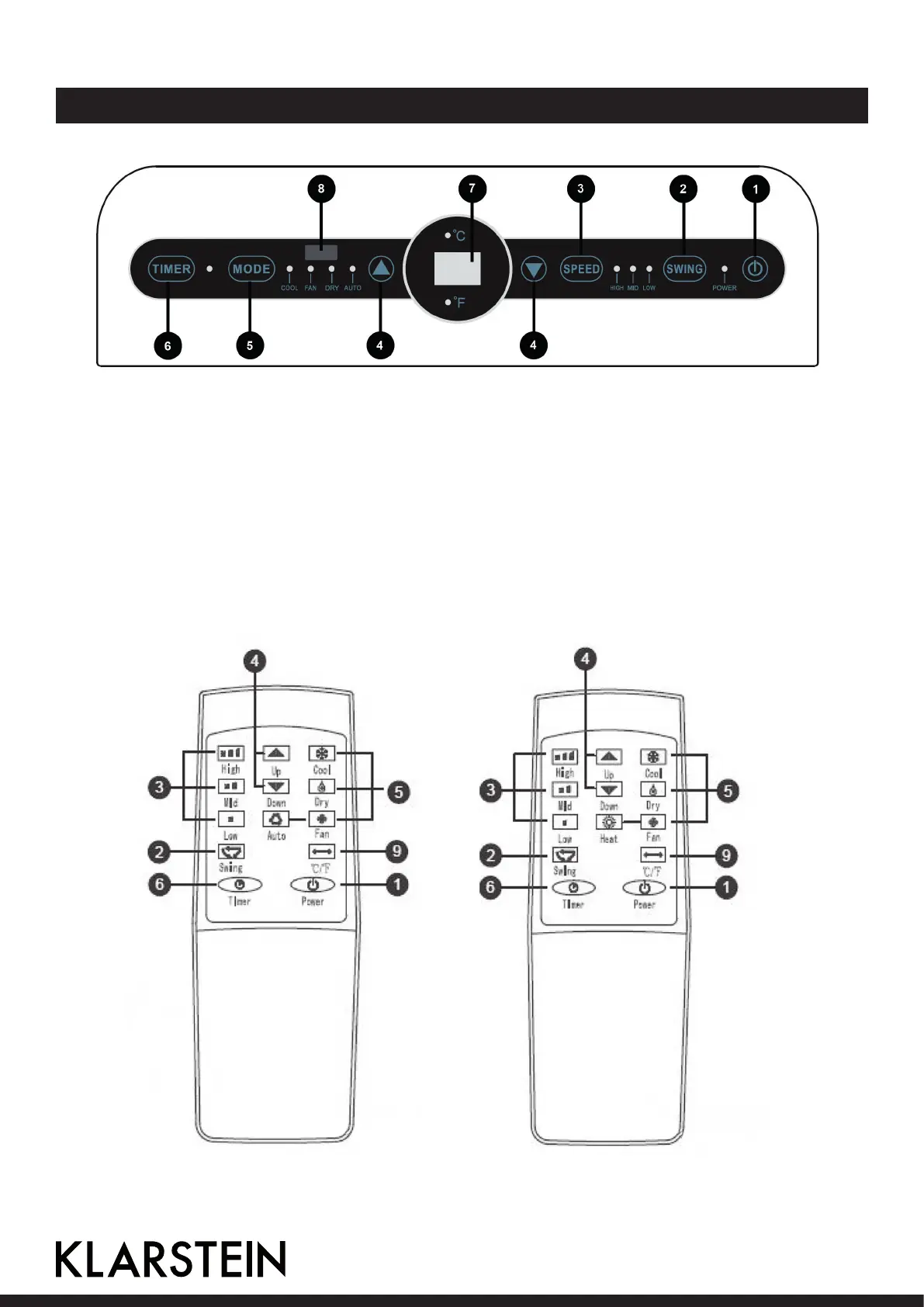 5 Modus Wählen Sie zwischen Kühlung/Lüftung/Entfeuchtung und Automatik.