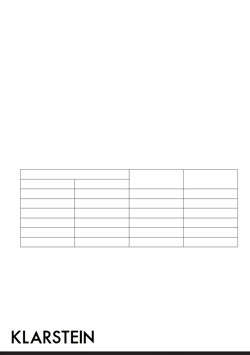 There are 6 levels of salt consumption in all. It is recommended to select the level according to below table: