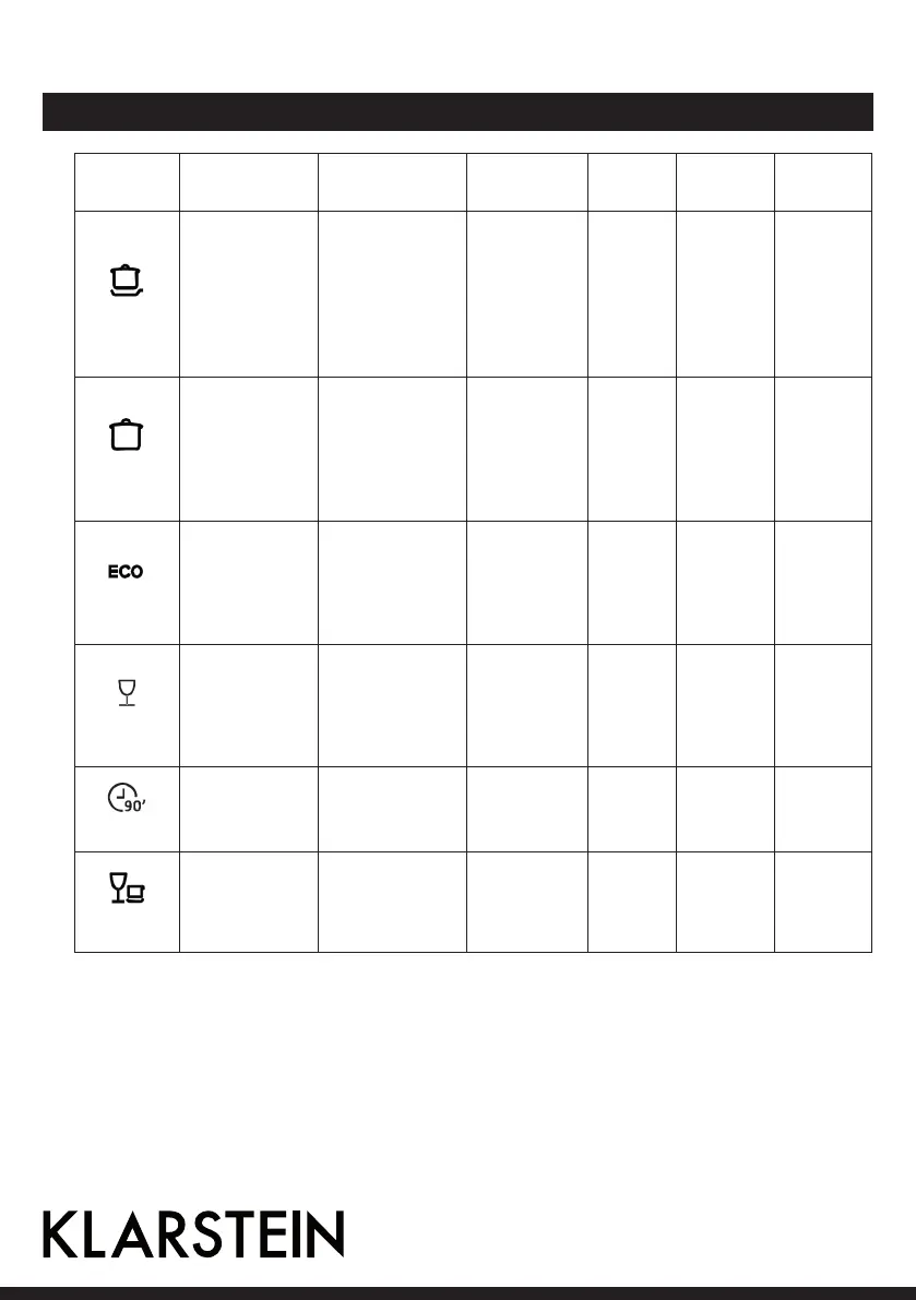 Klarstein 10028325 - Washing Programmes
