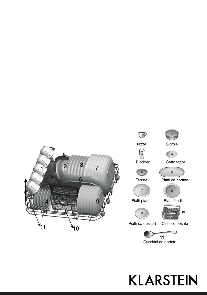 • Le stoviglie non devono essere sistemate una dentro l’altra o coprirsi a vicenda.