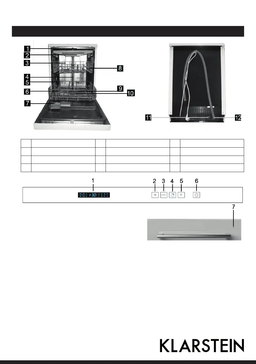 3 Upper basket 7 Dispenser 11 Inlet pipe connector
