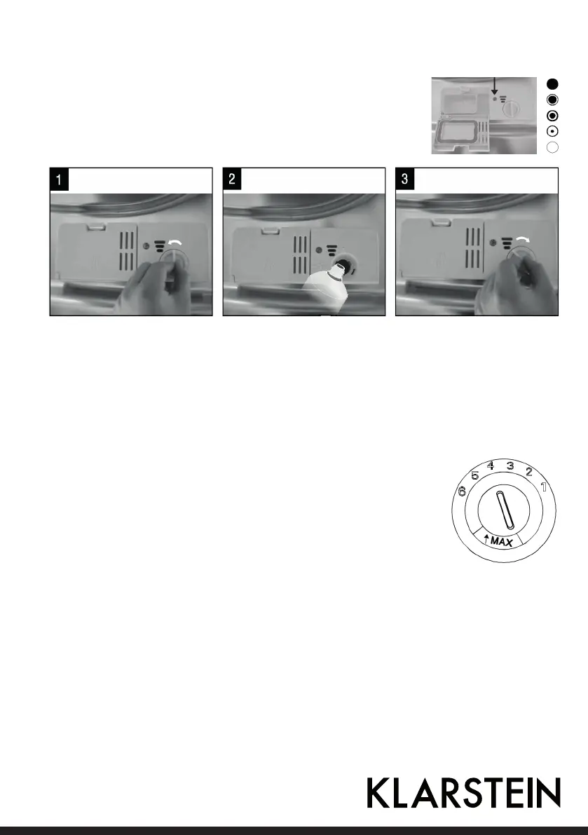 pensed by removing the dispenser lid and rotating the dial to „5“. If the dishes still