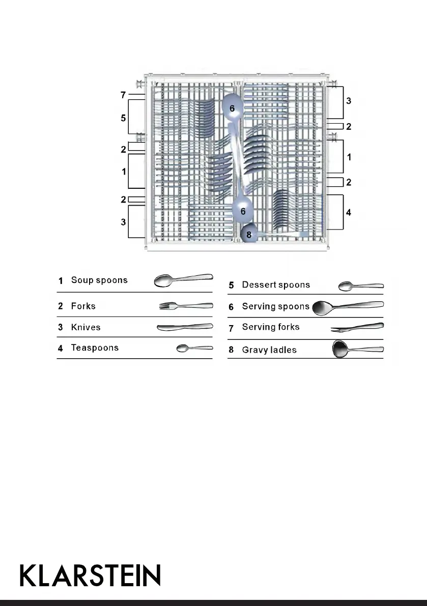 Cutlery should be placed in the cutlery rack separately from each other in the appropriate positions, and do