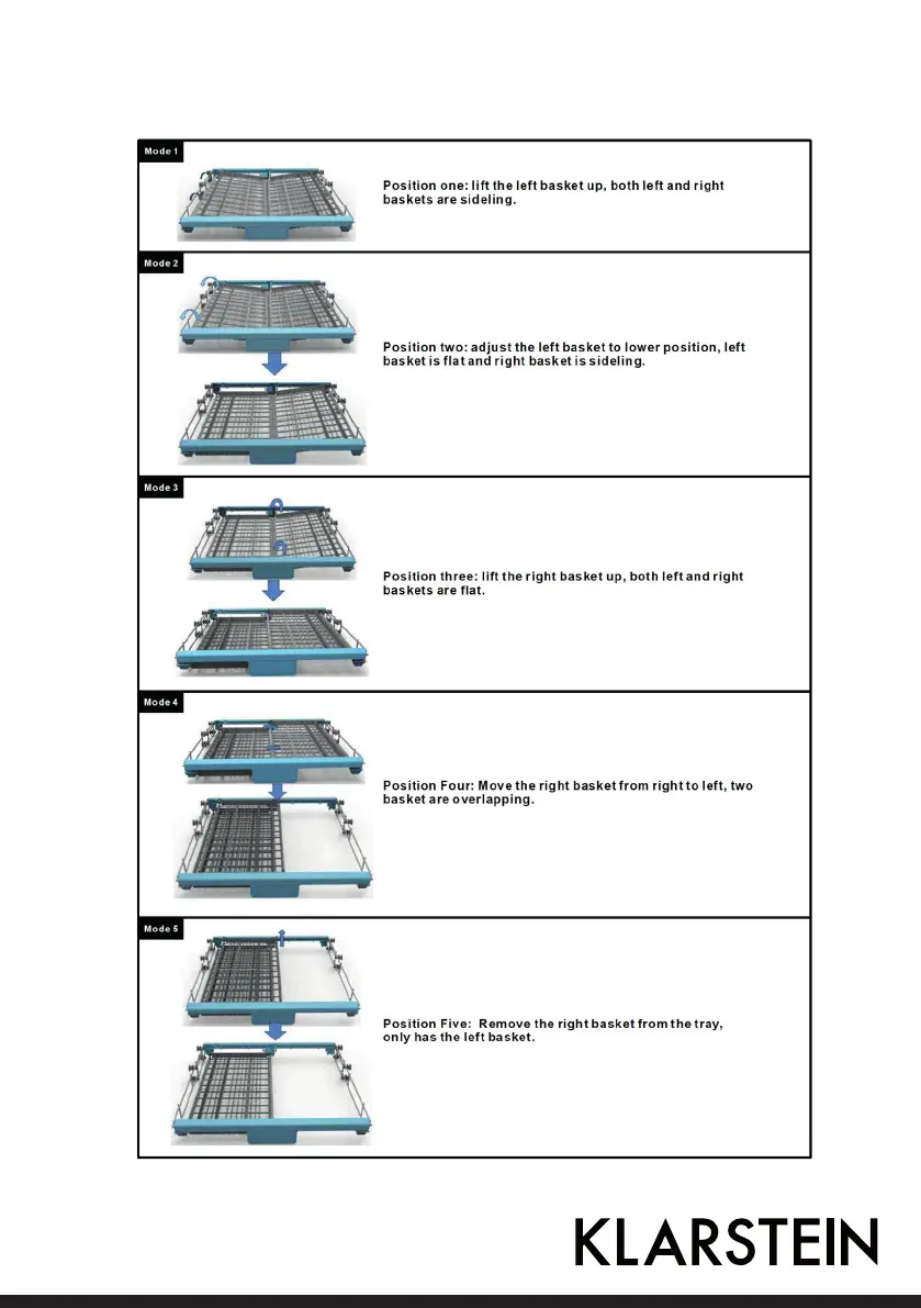 Cutlery basket could be have 5 positions: