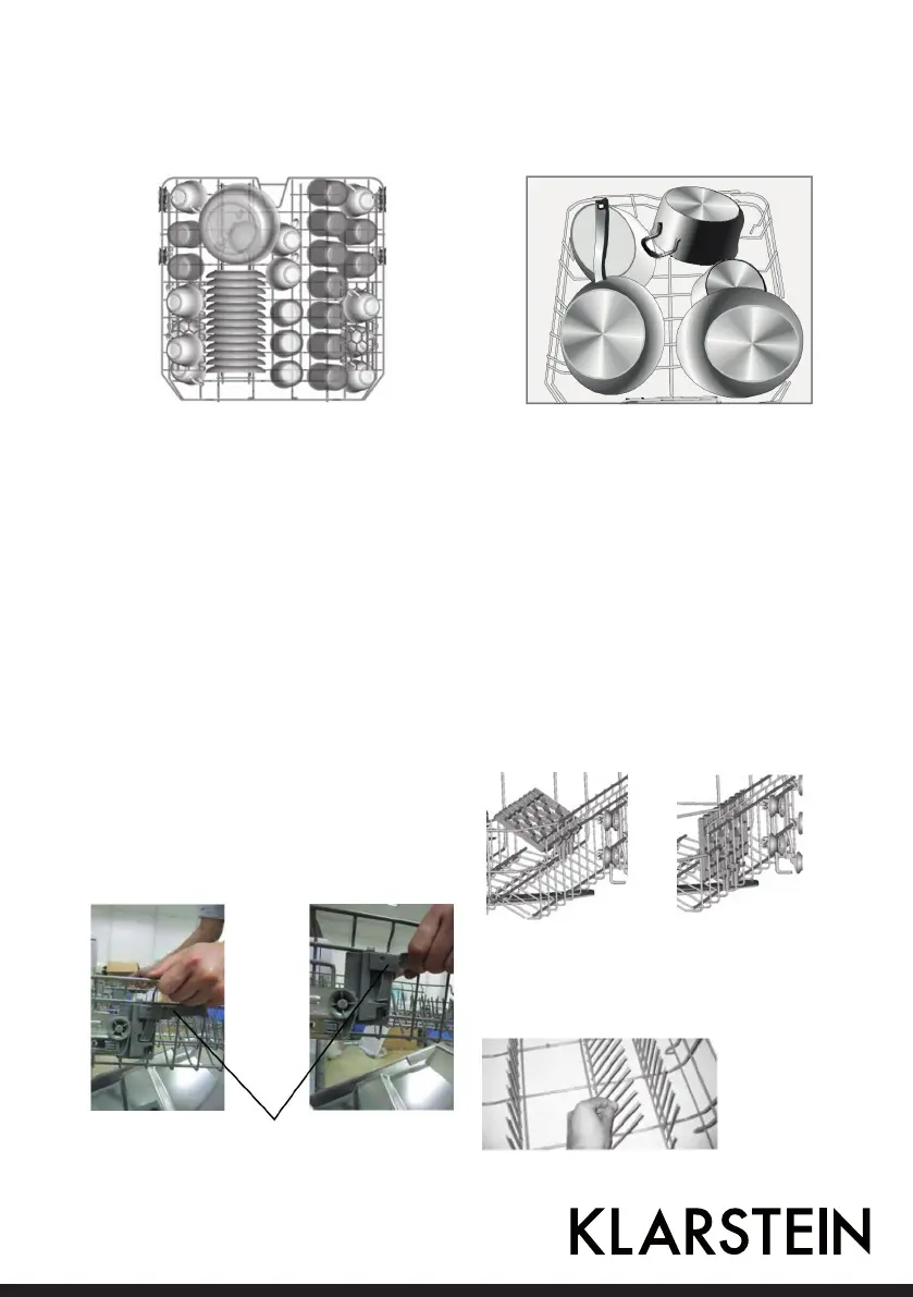 Sistemare le stoviglie grandi e più difficili da pulire nel