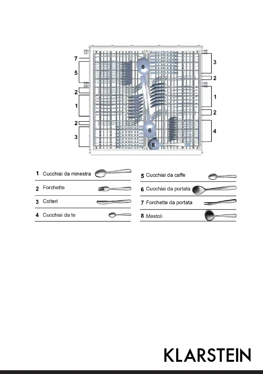 Sistemare le posate singolarmente posizionandole come indicato nella figura.