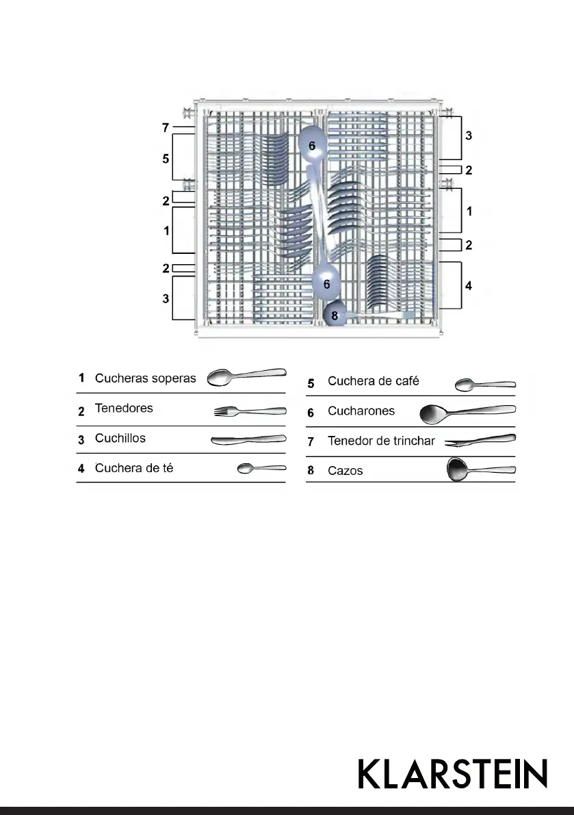 Atención: Compruebe que ninguna pieza queda colgada ni sobresale por abajo. Coloque el filo de los cubiertos