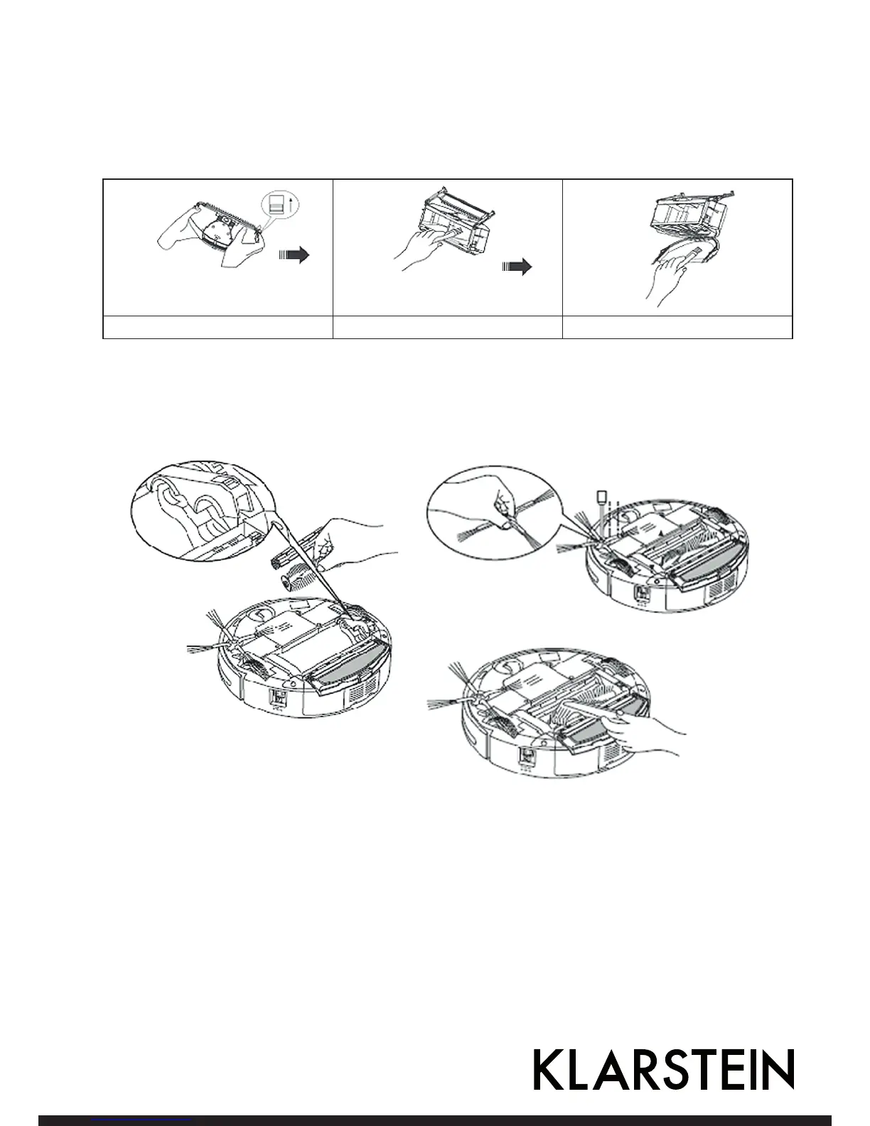 • Insert the main brush and floor brush into the holes before closing the cover in assembly.