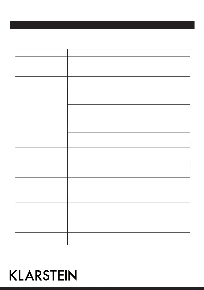 If you have a problem, you may find the solution in the table below. In case these solutions can not solve your