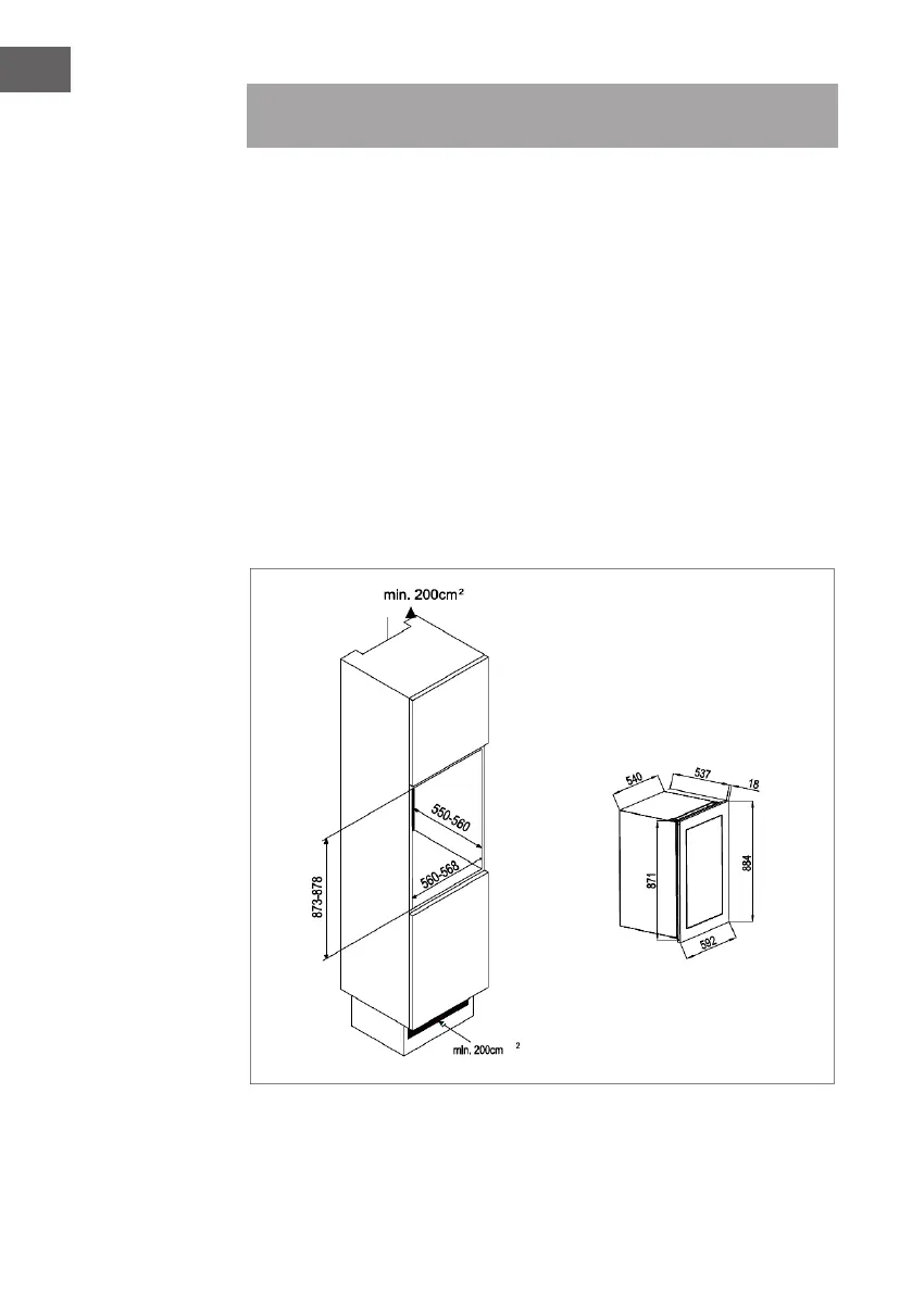 • Der Kühlschrank ist für den Einbau in Küchenschränke ausgelegt und mit