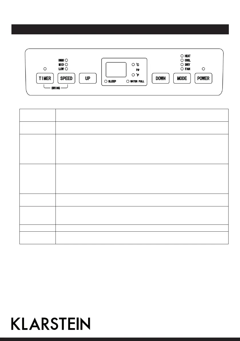 Drücken Sie auf diese Taste, um die Geschwindigkeit des Ventilators einzustellen: hoch