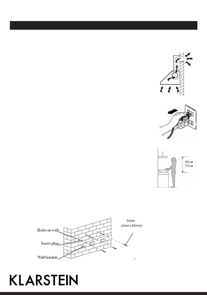 Drill 3 holes to accommodate the bracket. Screw and tighten the bracket onto the wall with the screws