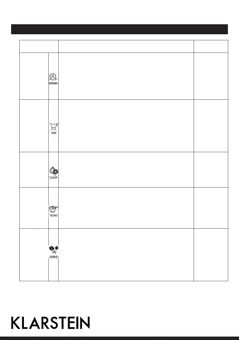 • Coffee beans: 100-250 g, 90 seconds.