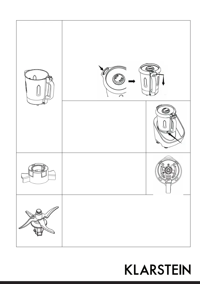 • Befestigen Sie den Klingenhalter von unten an der Schüssel, indem Sie ihn