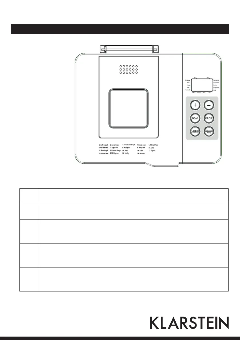 In setting status, pick one of 1.0LB/1.5LB as bread weight. Except for 1 to 9 “loaf” can’t be adjusted.
