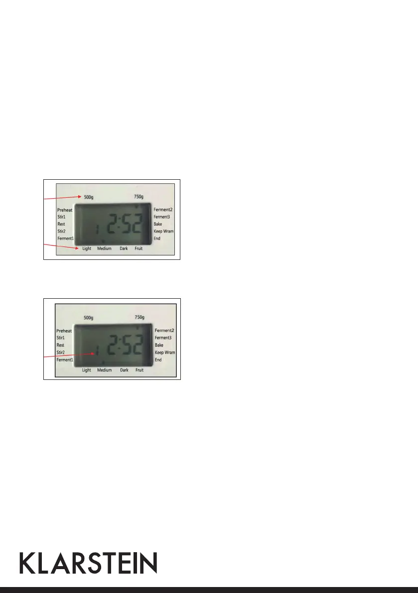 4. Une fois l’appareil branché à une prise électrique, il affiche le programme par défaut : 750 g / brunissement