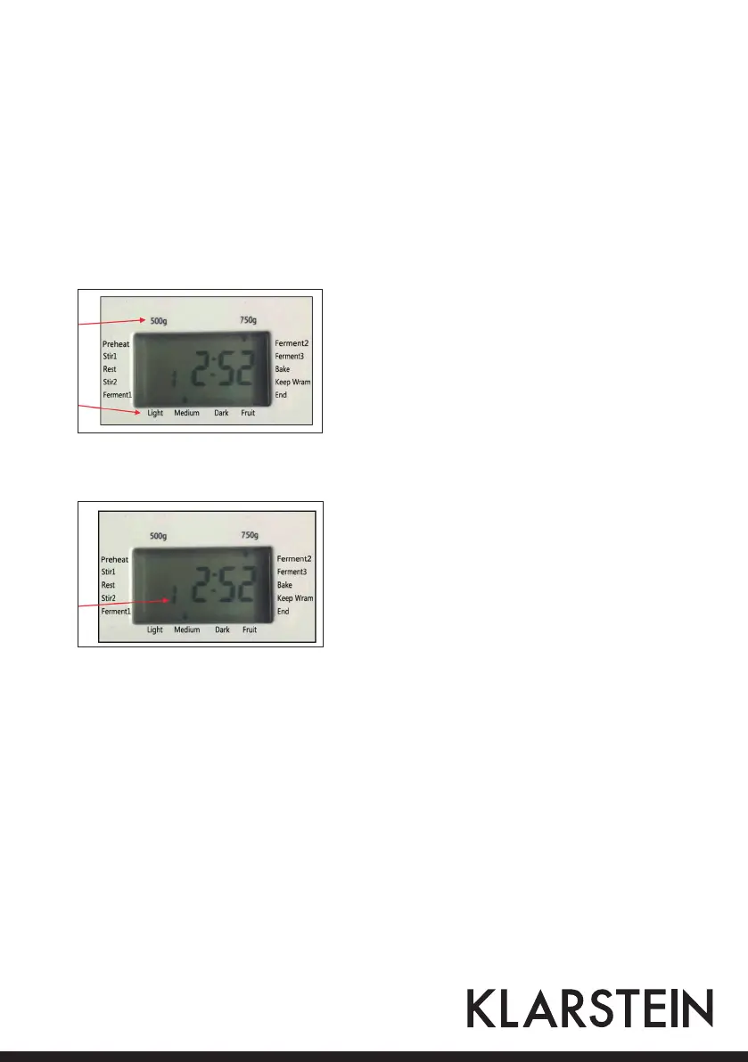 6. Selezionare con i tasti LOAF e COLOR il peso e la doratura (COLOR) desiderati.