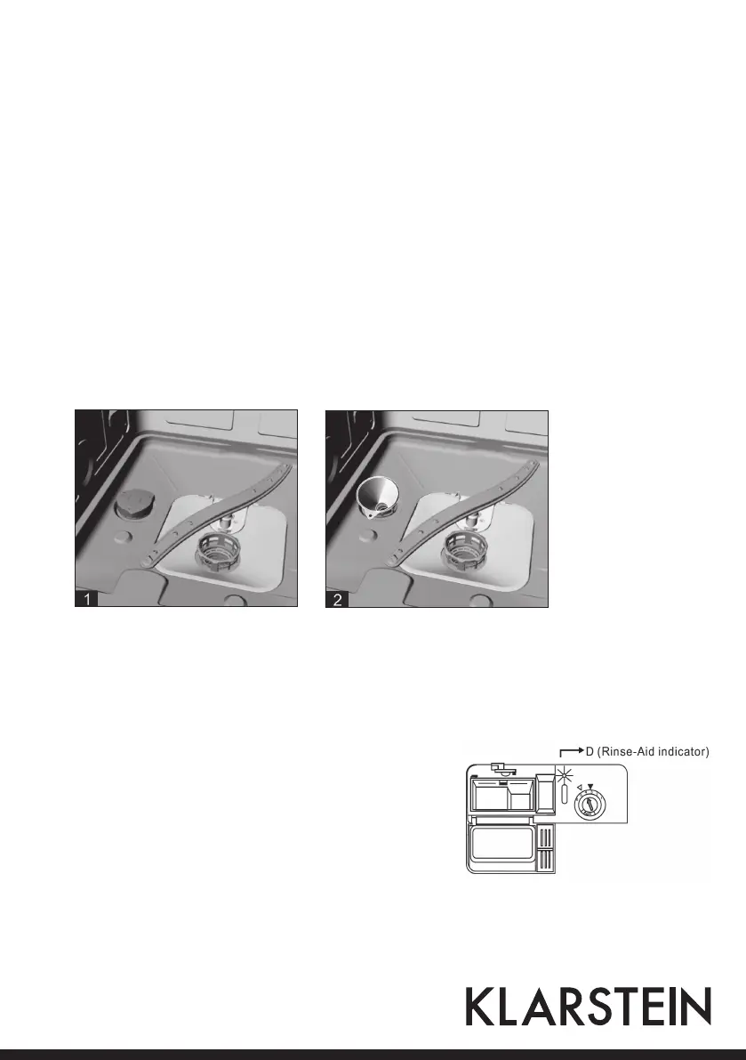 level indicator „D“ located next to the cap. When the rinse-aid
