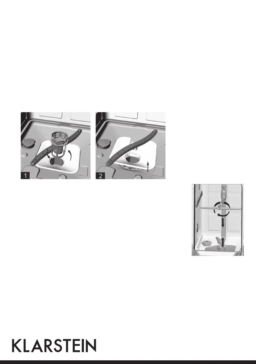 • To remove the spray arms, screw off the nut clockwise to take out the washer