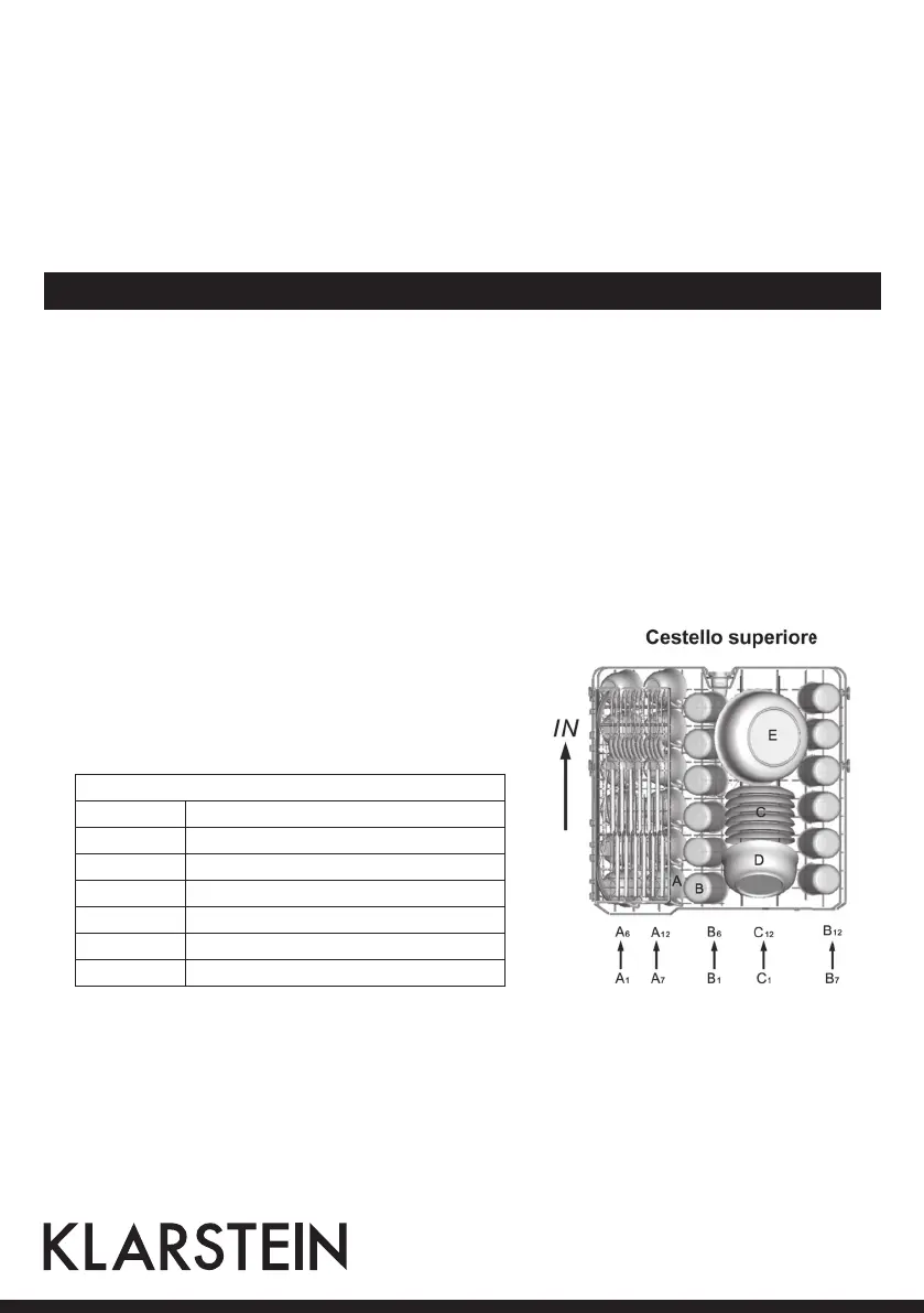 Collocare le stoviglie nel cestello nel seguente modo: