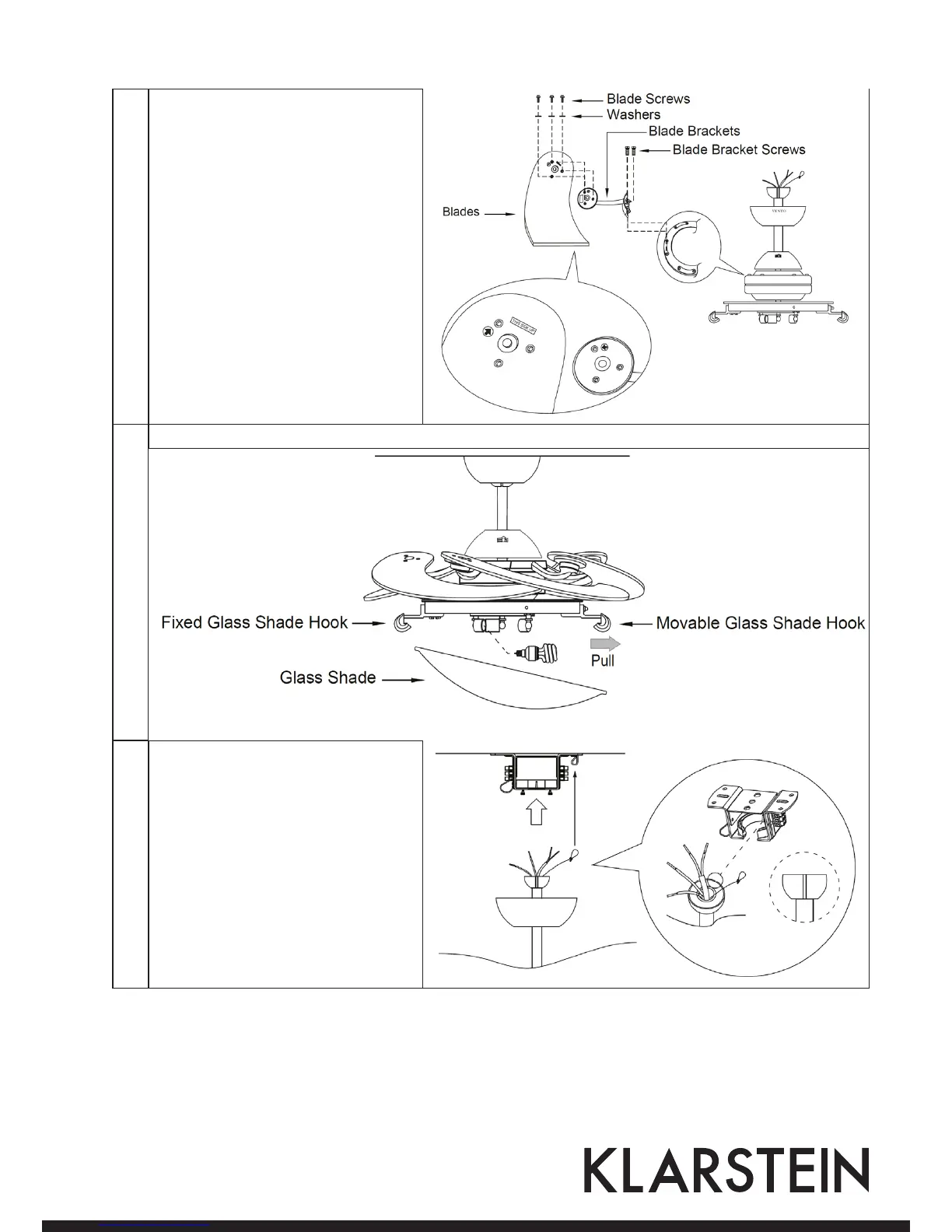 Install the glass shade on the light kit by pulling out one movable glass shade hook.